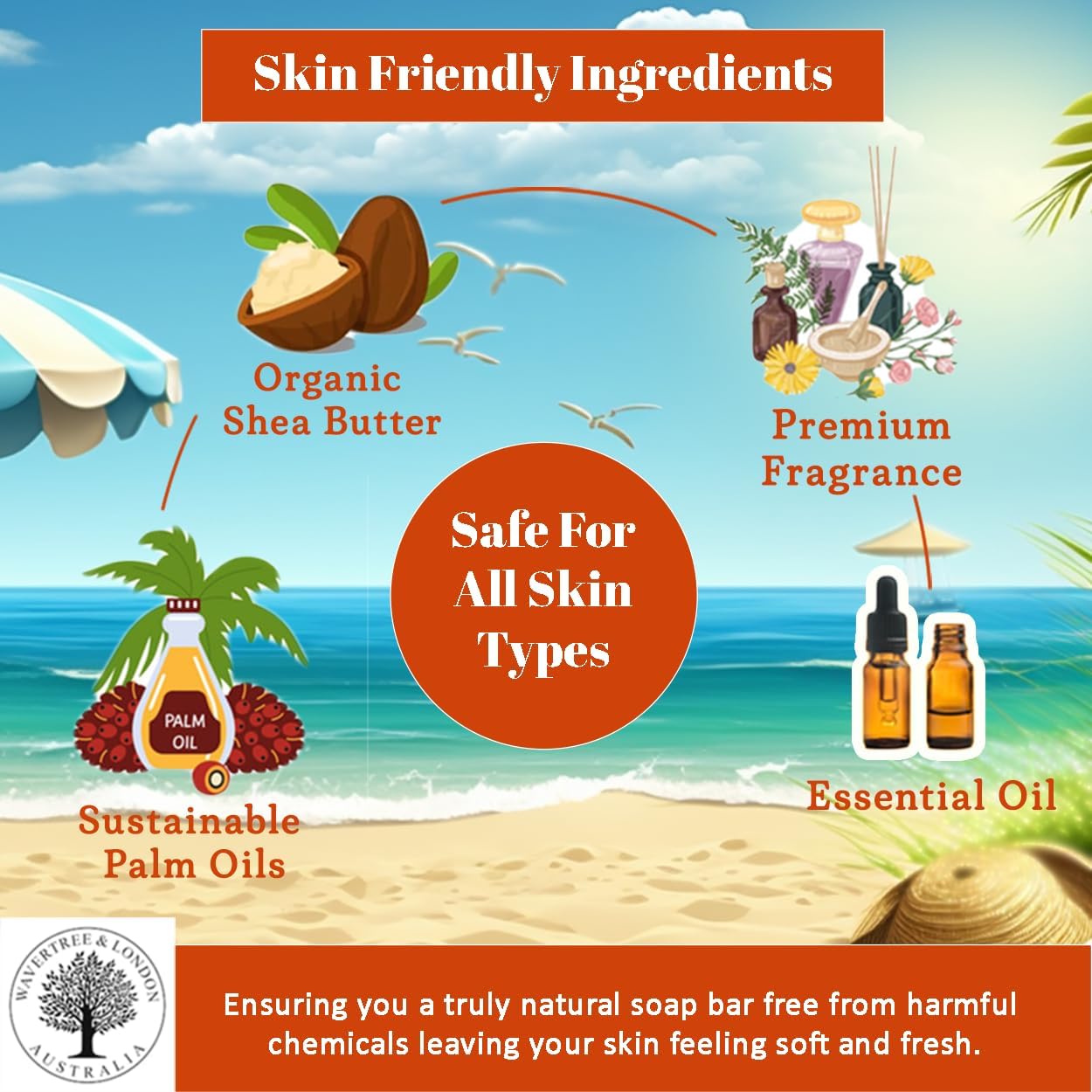 Wavertree & London Summer Spritz Scented Natural Soap Bar, 7oz Moisturizing French Triple Milled Soap Bar for Women & Men