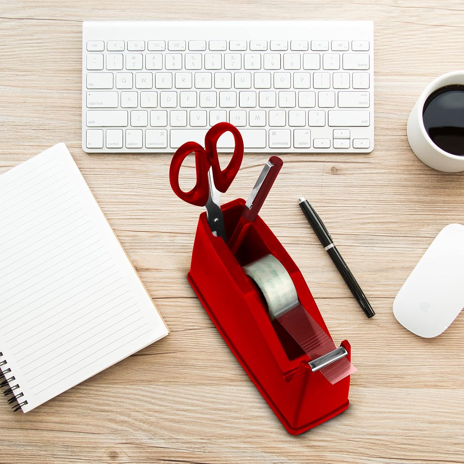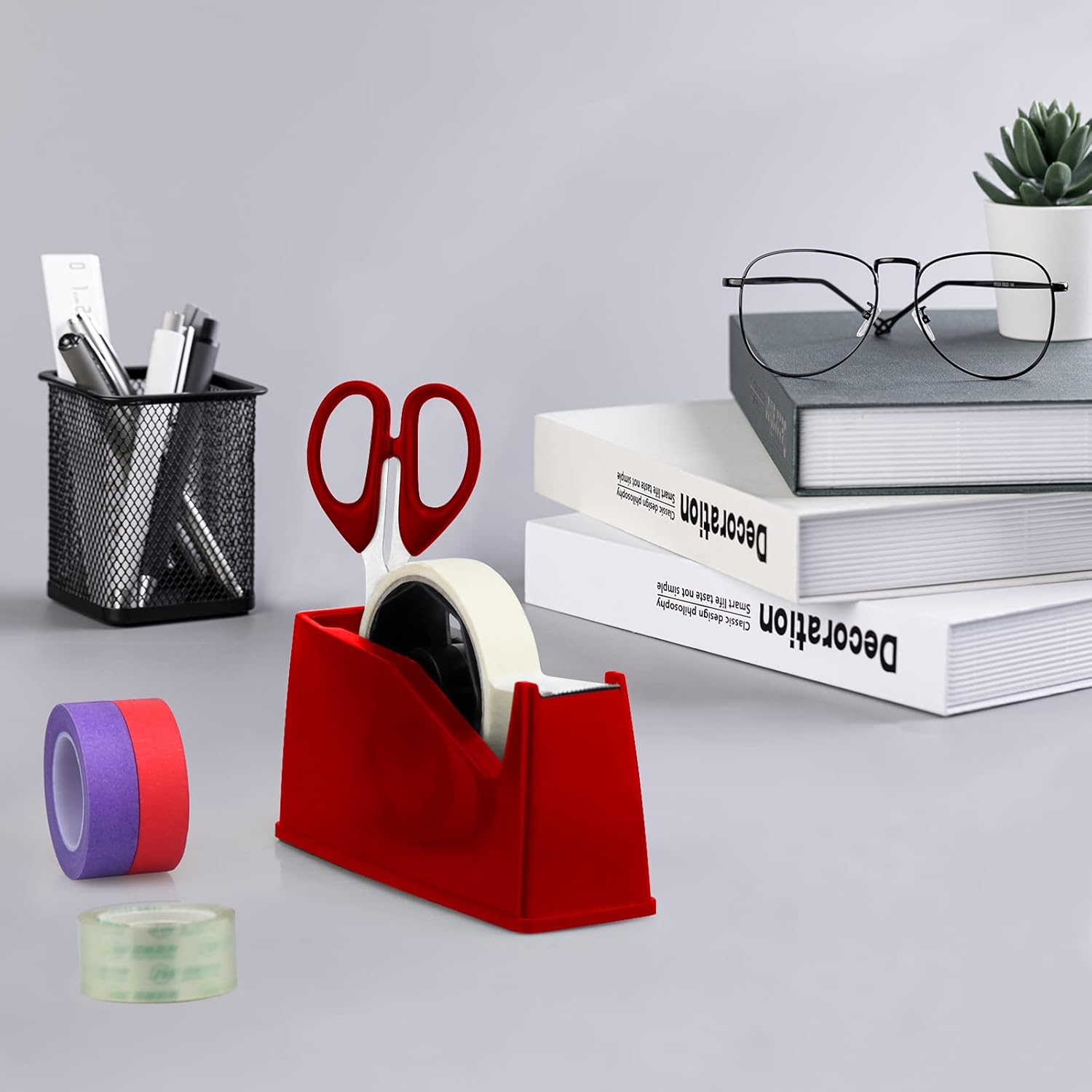 - 4. Heavy Duty Base: 1.3LB Weighted Tape Dispenser and full non-skid pad is firm enough to have a strong grip on the surface, Easy for One-Handed Dispensing. So you can safely and easily use it from different angles