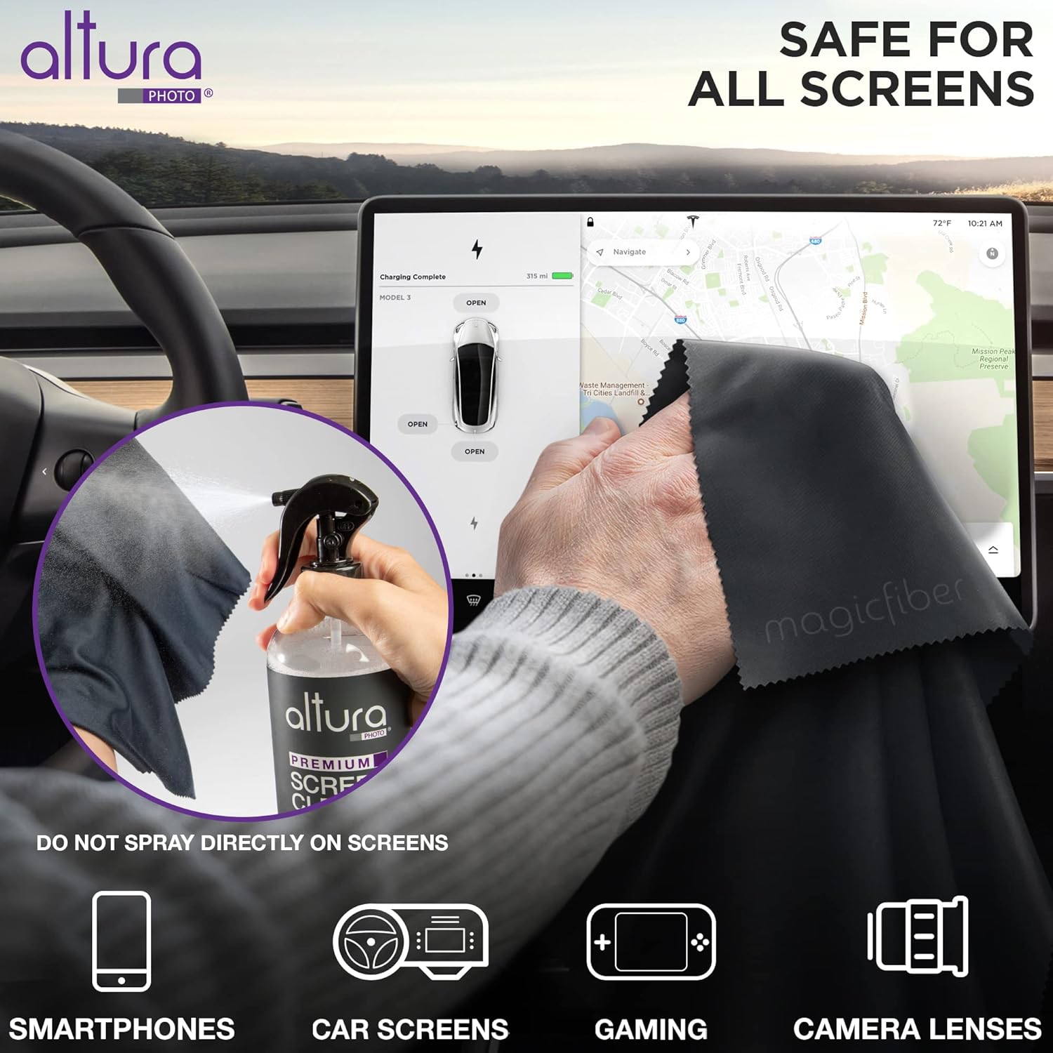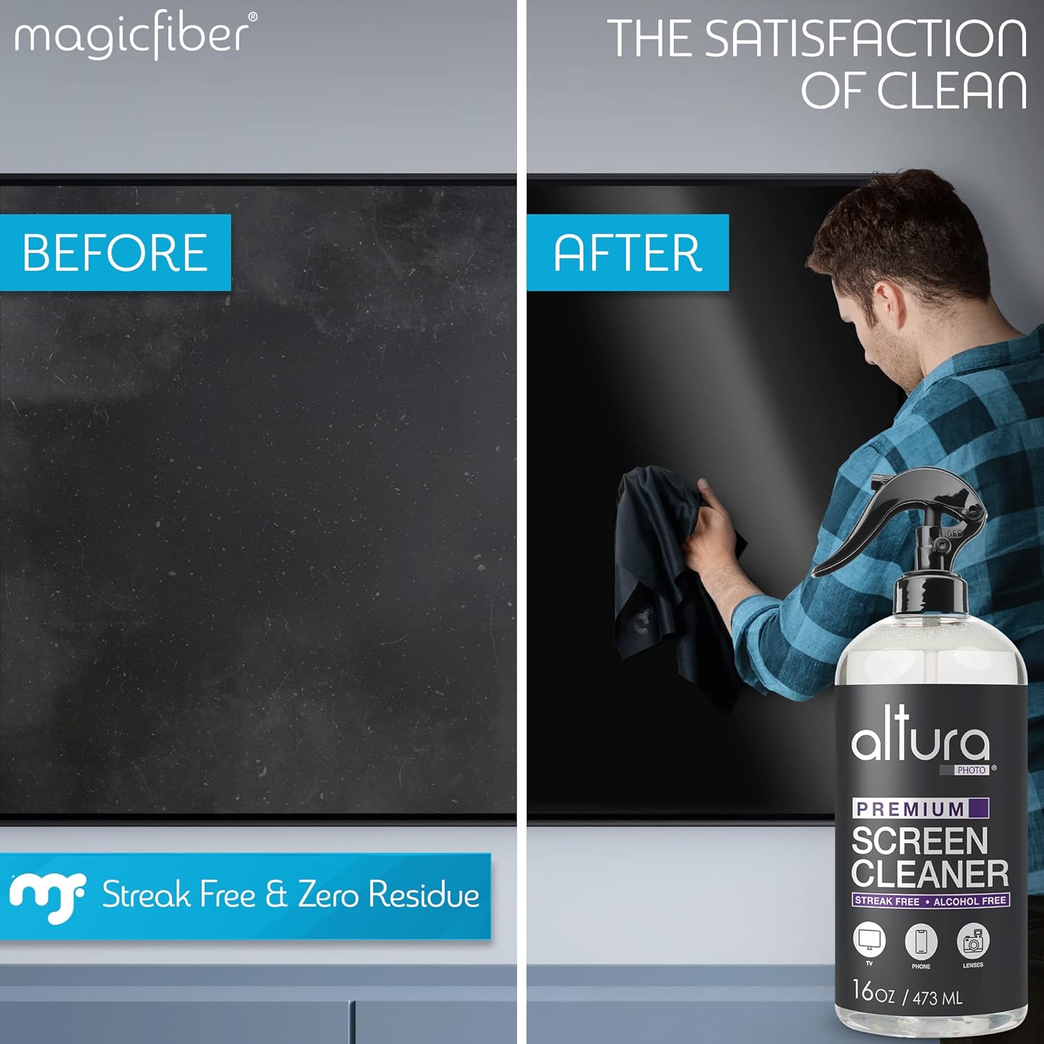 - TV & COMPUTER SCREEN CLEANER SPRAY: Altura Photo 16 oz. cleaning solution spray bottle. Works for all premium and non-premium electronics. Alcohol FREE, ammonia FREE, odor FREE, leaves ZERO scratches, streaks, or marks for pixel-perfect picture every time. Use as a screen cleaner, computer screen cleaner, tv screen cleaner.