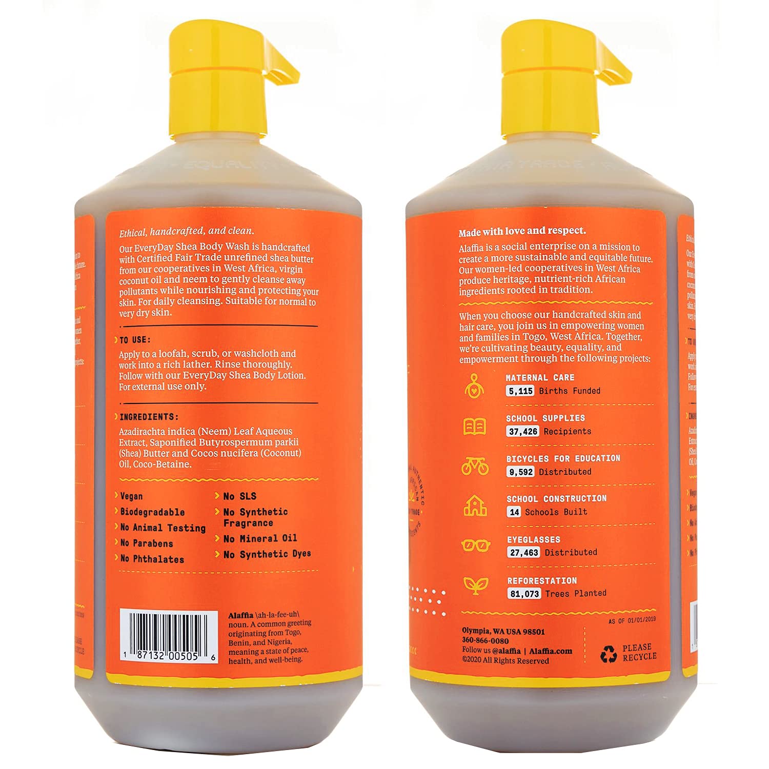 Alaffia Everyday Shea Body Wash, Naturally Helps Moisturize and Cleanse Without Stripping Natural Oils with Fair Trade Shea Butter, Neem, and Coconut Oil, Unscented, 2 Pack - 32 Fl Oz Ea