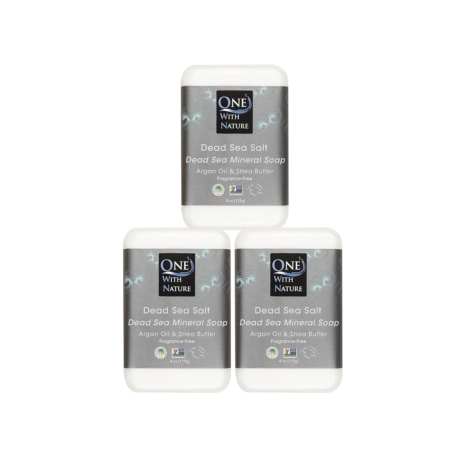 One With Nature Dead Sea Salt Soap 4oz 3-Pack – Purifying Soap Bar with Dead Sea Minerals for Face & Body, for Men & Women. Unscented.