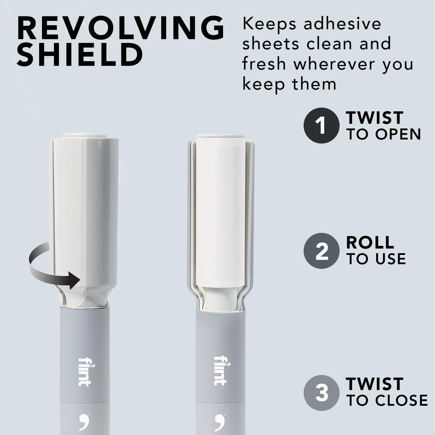 - CLEAN SHEETS ALWAYS - Flint's signiture retractable design protects the sheets when not in use. Just twist to open, twist to close - no tearing, sticking or mess. No more wasting lint roller sheets in-between uses.