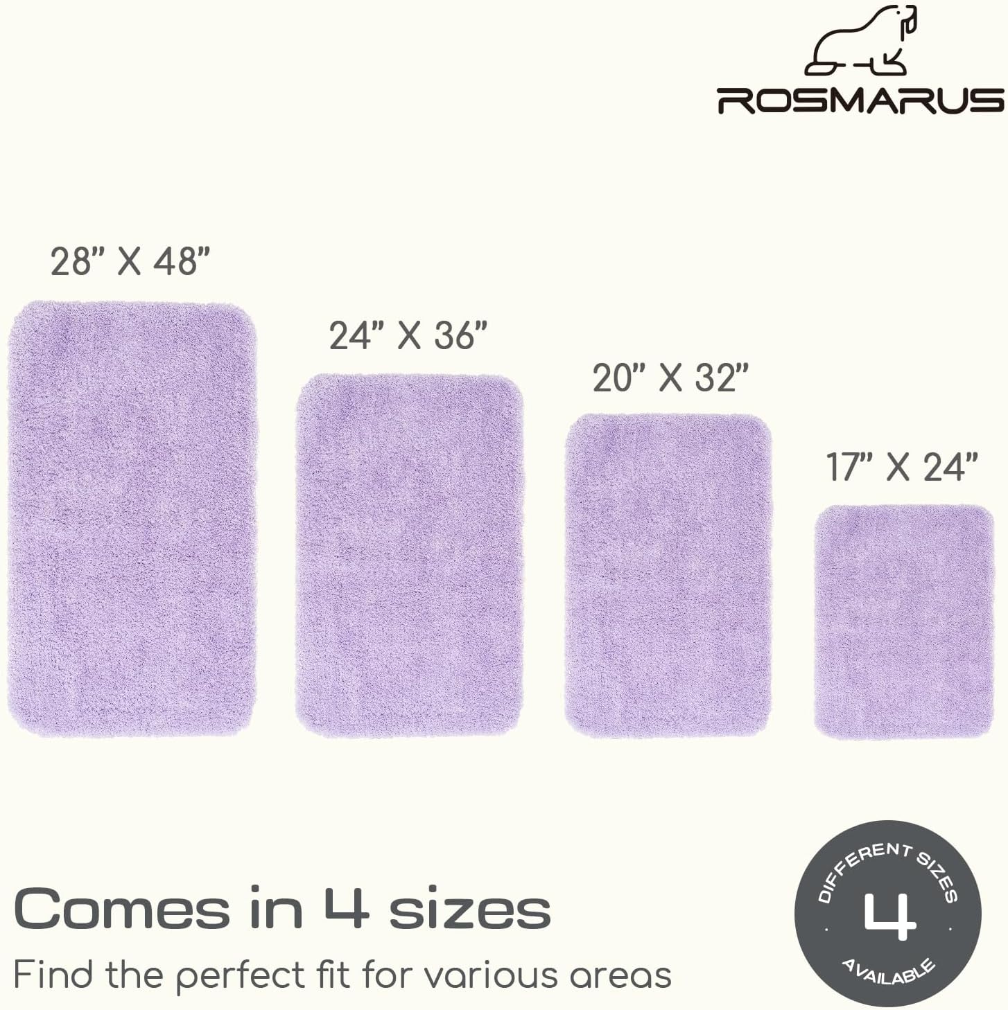 ROSMARUS Shaggy Non-Slip Bath Mat 24" x 36", Water-Absorbent Plush Bathtub Mat, Soft, Machine Washable, Purple