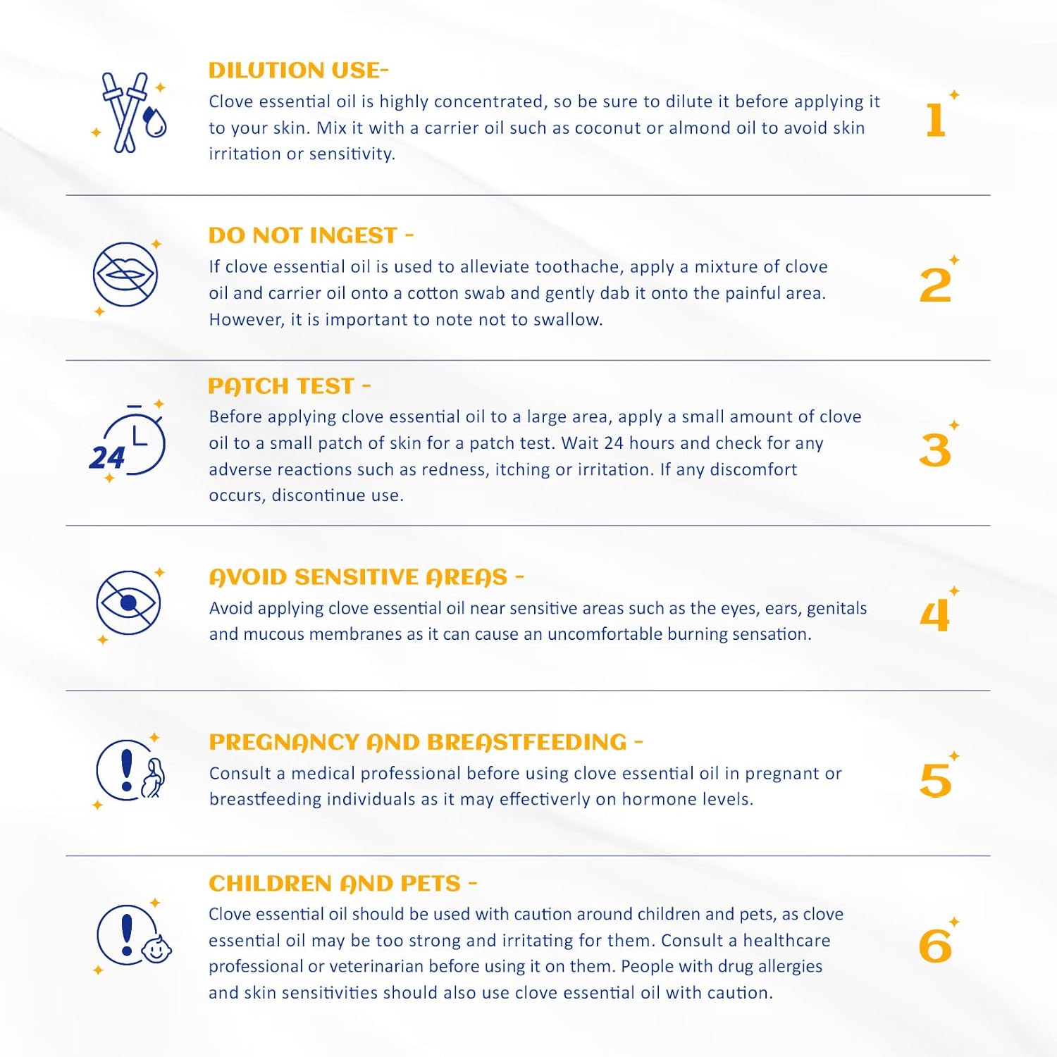 - Multiple Use Scenarios: Add 1-2 drops of clove essential oil when washing clothes in the washing machine to eliminate odors, commonly used in, diffuser, home cleaning, kitchen, shower, bathtub, toilet, sauna, humidifier, spa, aromatherapy, outdoor space, car, air freshening, office, bedroom, yoga