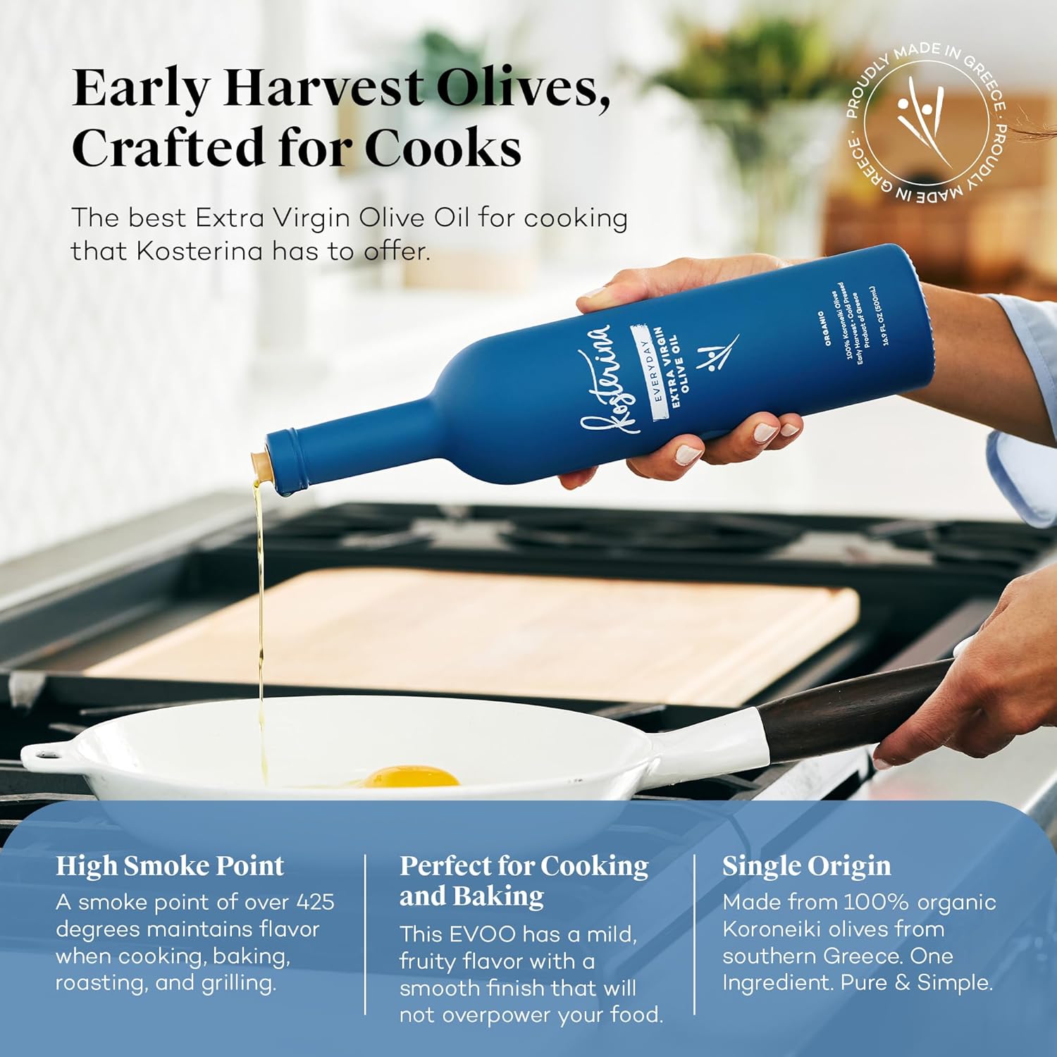 Kosterina - Everyday Organic Extra Virgin Olive Oil, High Heat Cooking Greek EVOO, Made from 100% Pure Early Harvest Koroneiki Olives, Natural Superfood, Polyphenol Rich, High Antioxidants (16.9 oz)
