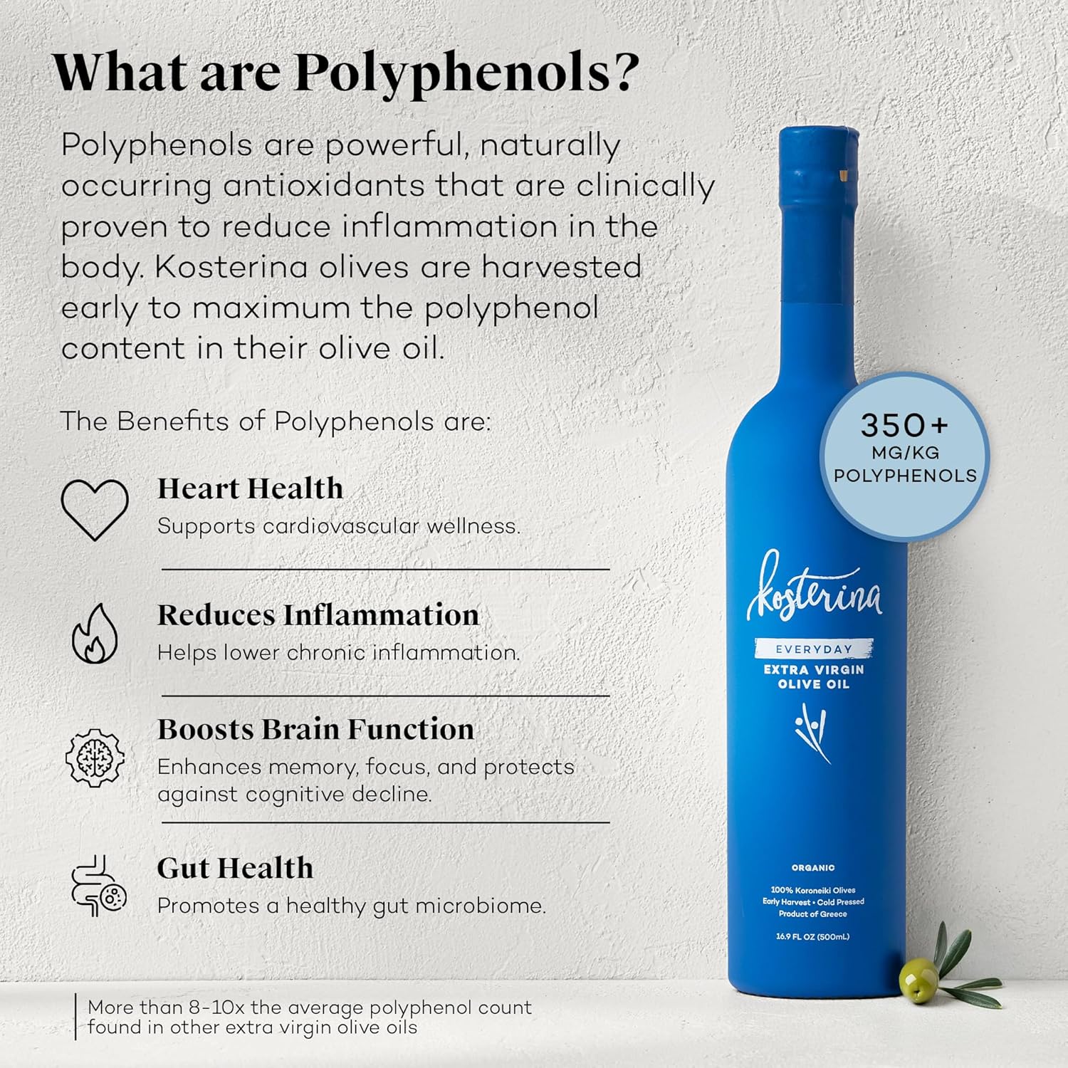 - Polyphenol Rich Olive Oil Superfood – This high polyphenol olive oil contains over 350mg/kg of antioxidants, supporting heart health and reducing inflammation naturally—fuel your body with good fats.