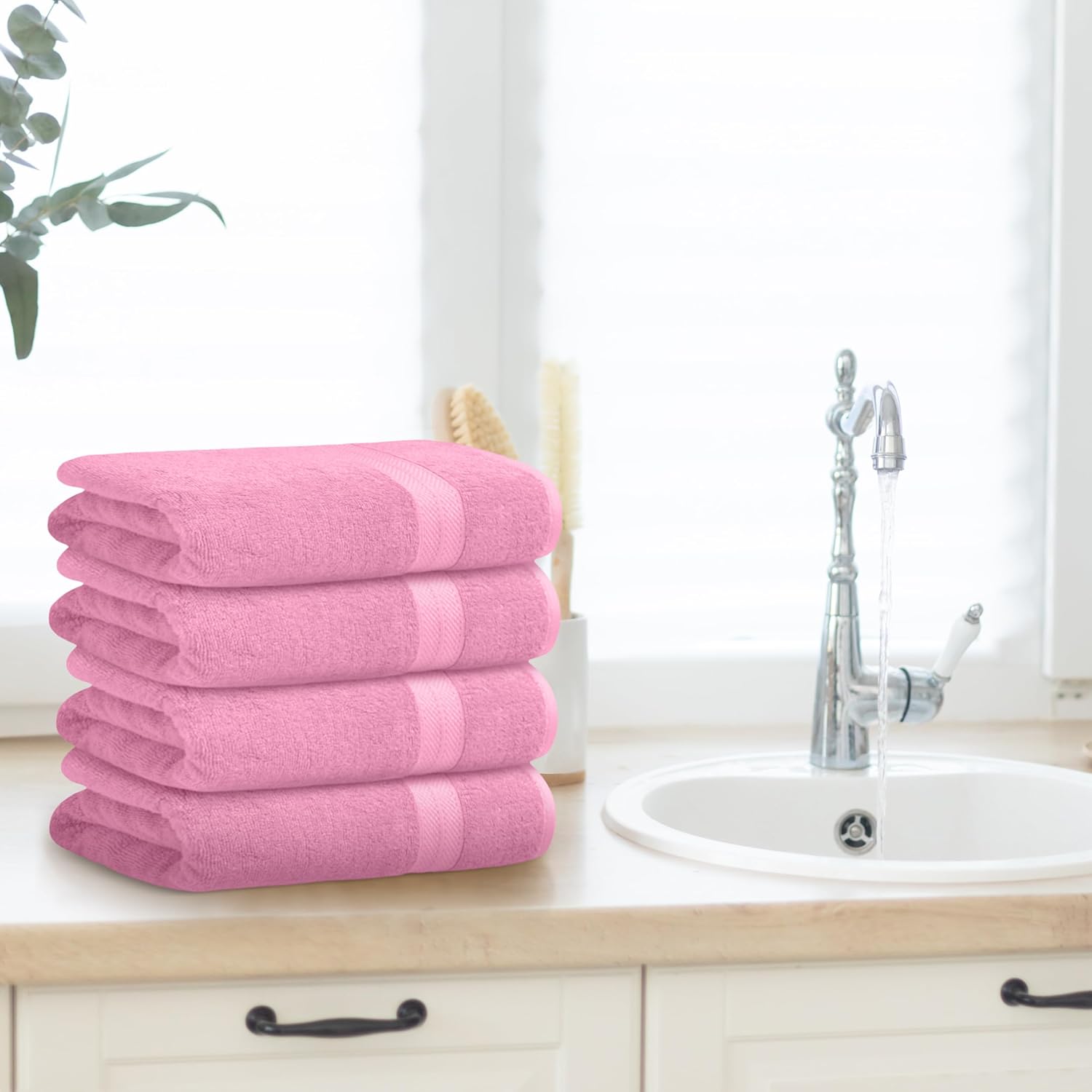 Avalon Towels Pink Bath Towels Set of 4 pcs (27x54 inches), 100% Cotton Towel Absorbent and Quick Dry Pink Towels for Bathroom, Super Soft and Perfect for Daily Use