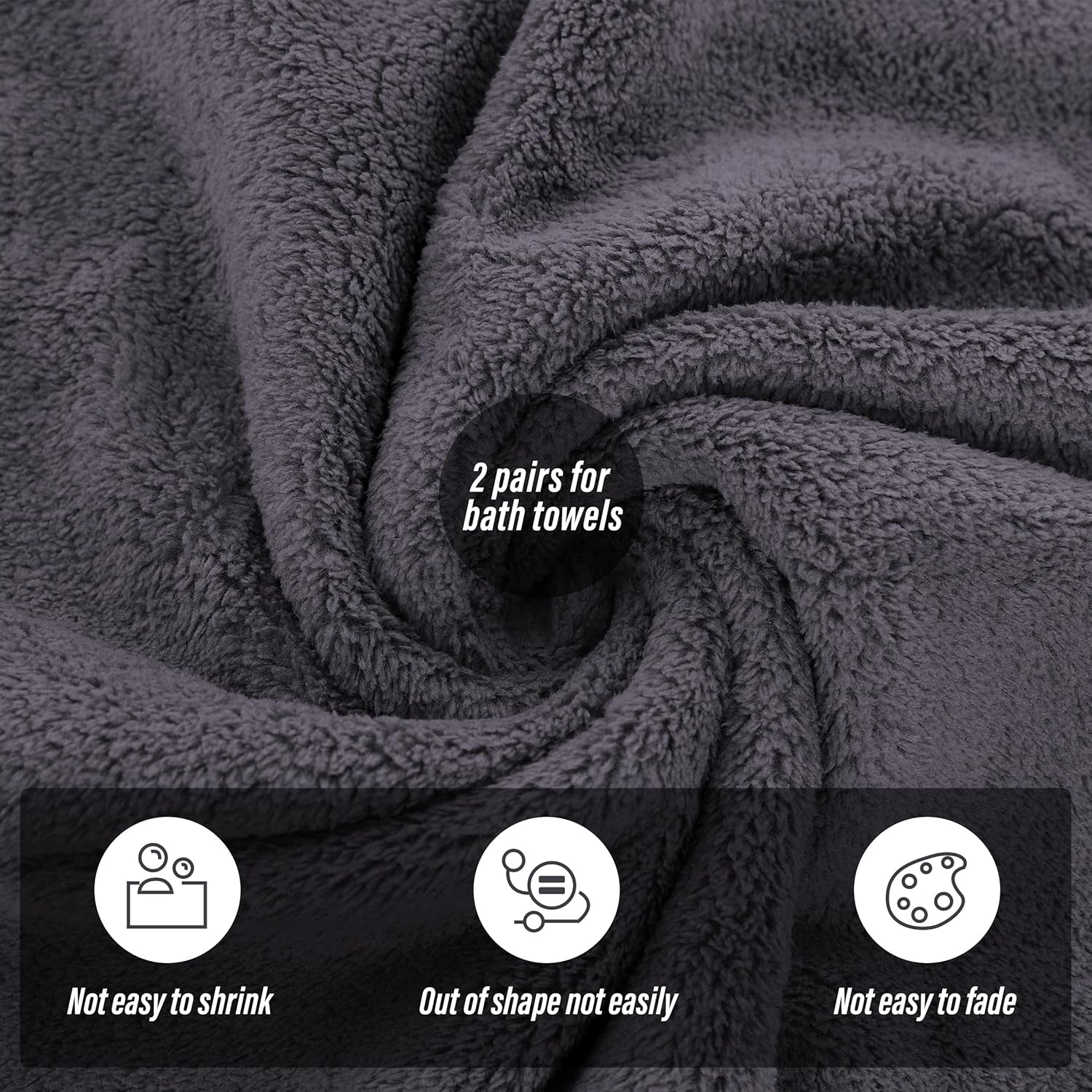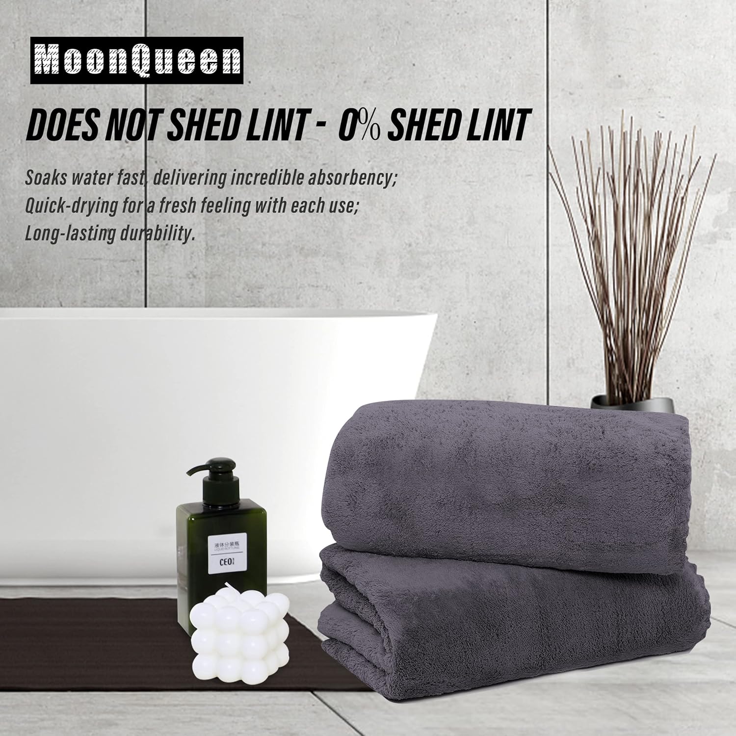 MOONQUEEN 2 Pack Premium Bath Towel Set - Quick Drying - Microfiber Coral Velvet Highly Absorbent Towels - Multipurpose Use as Bath Fitness, Bathroom, Sports, Yoga Towel (Dark Grey, Bath Towel)