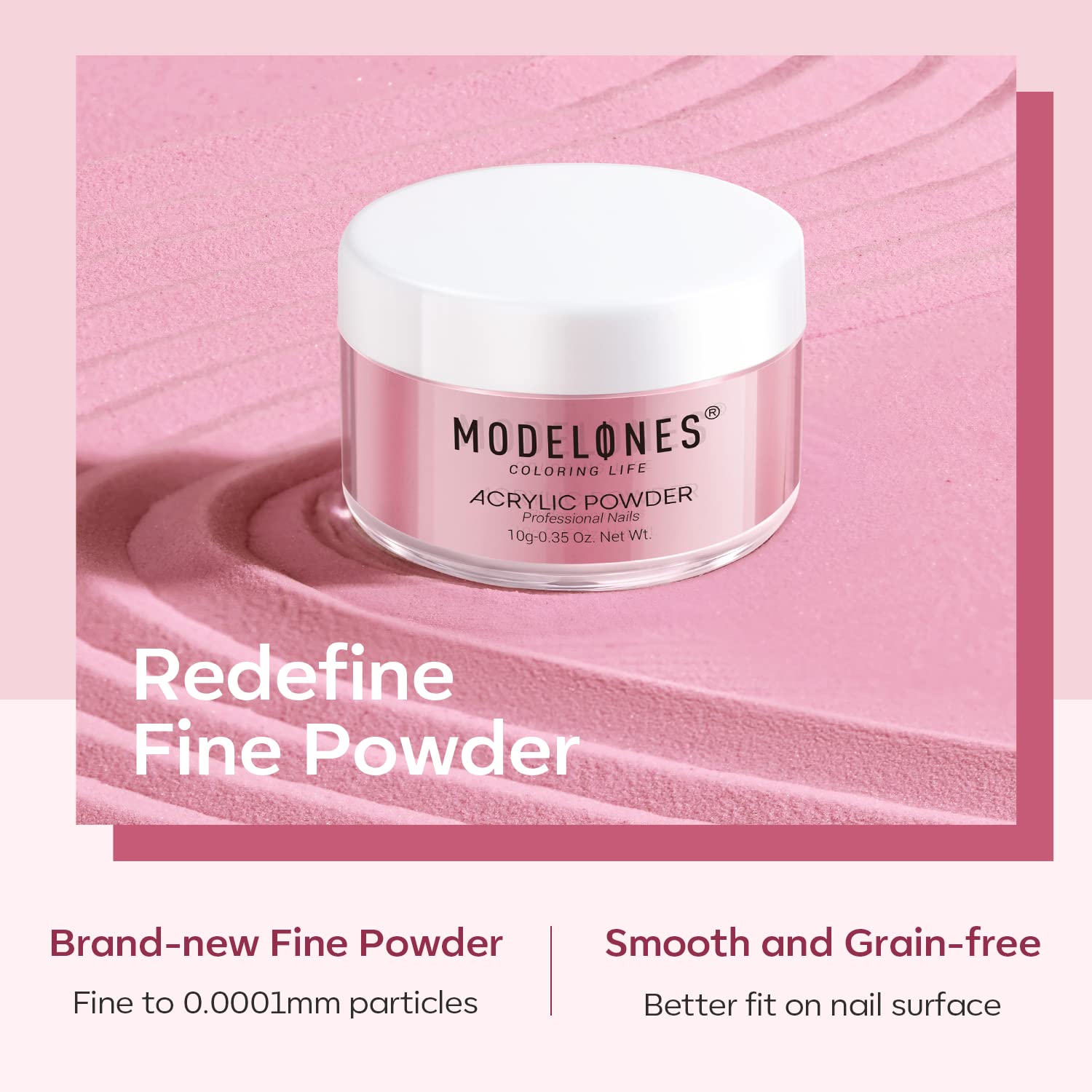 - 🌸【No Need Lamp & Easy To Use】Modelones acrylic nail powder system doesn't need a nail lamp to cure. Easy application and works with all of Modelones monomers and brush!Perfect for beginners and nail DIY lovers who enjoy making nail extensions, nail carving, french nails, 3D nail art design.