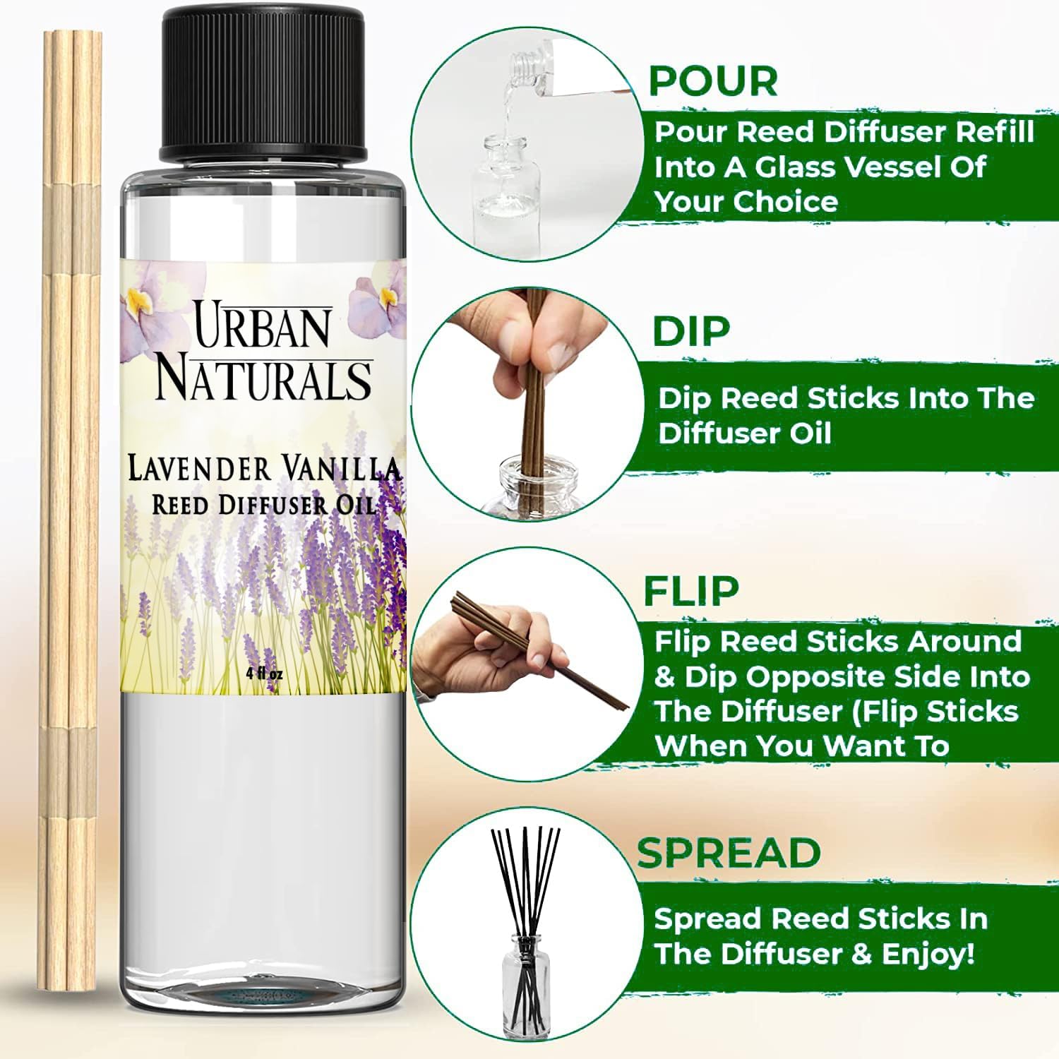 Urban Naturals Lavender Vanilla Scented Oil Reed Diffuser Refill and Reed Sticks – Lavender Blossom, Creamy Vanilla, White Woods and Sugared Musk, 4 oz (2 Pack)