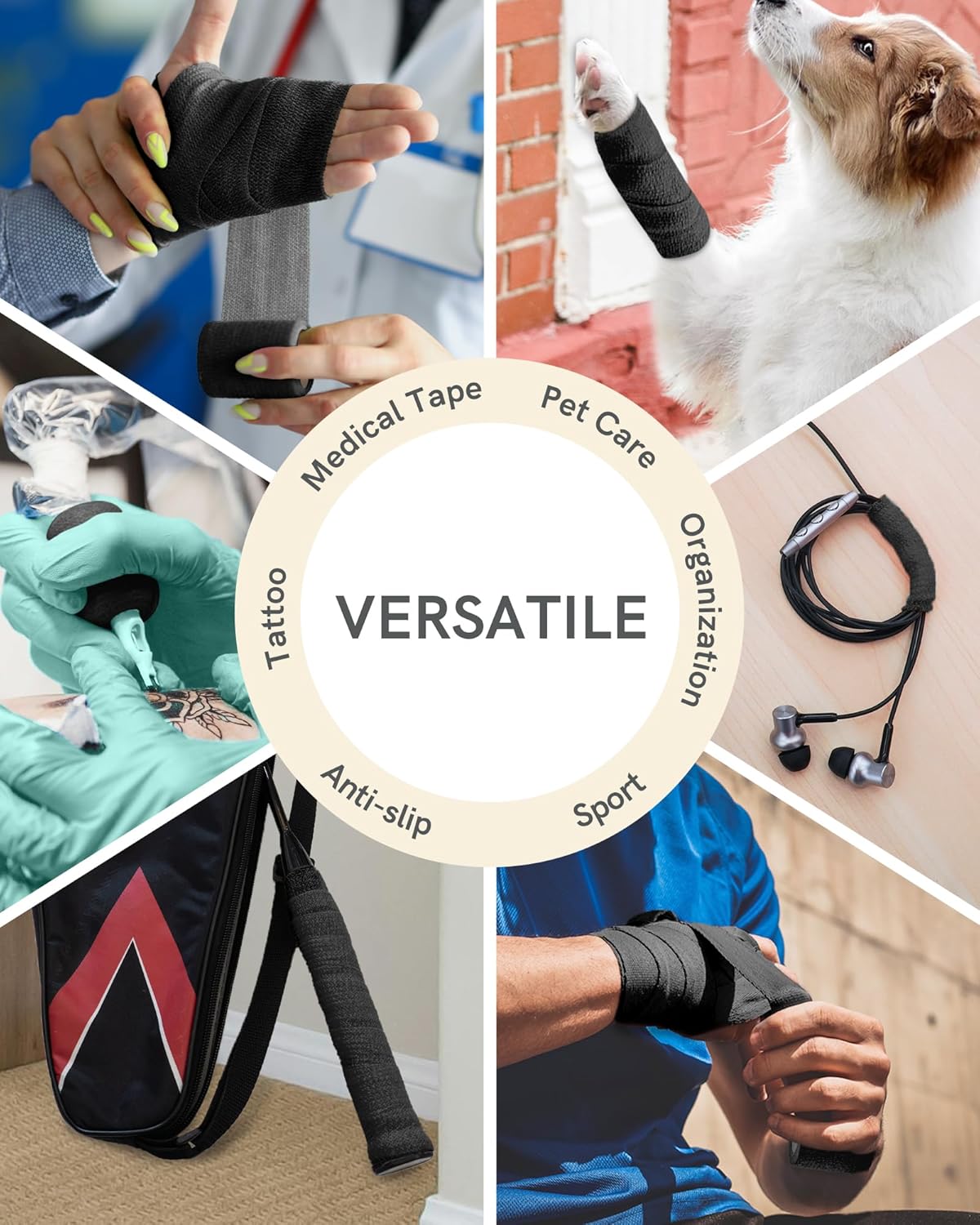 - Versatile in Black: Ideal for first aid, tool wrapping, or décor, our black self-adhesive bandage combines utility with style.
