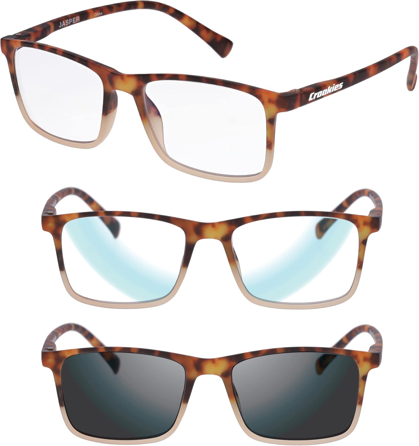 Croakies Jasper Photochromic Progressive Eyewear | UV400 Sunglass for Outdoor | Bluelight Eyeglass for HEV Devices | Bundle