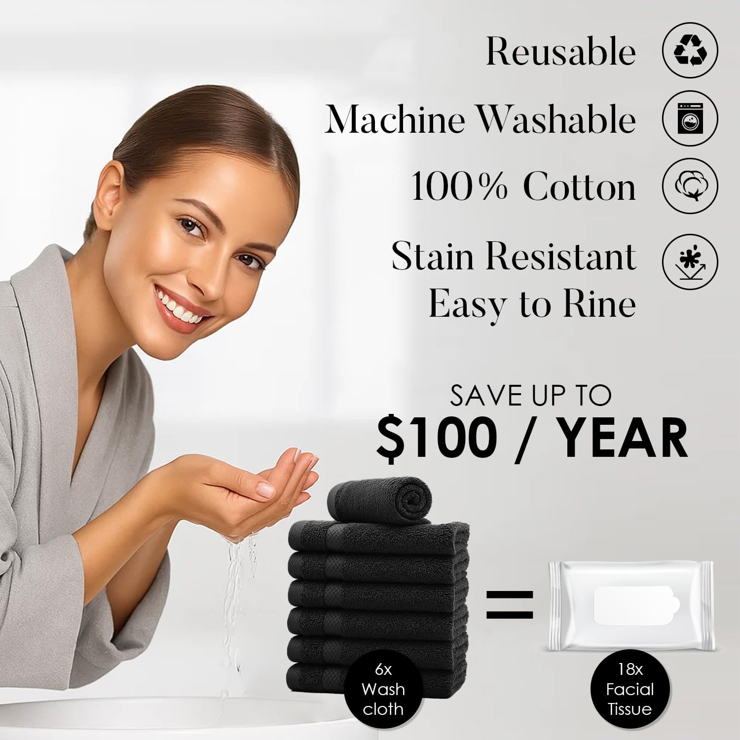 DAN RIVER 12-Pack Premium 100% Cotton Black Face Towels – Reusable Face Towel Set, Soft & Absorbent Rough Wash Cloths for Bathroom & Body – Hand and Face Towels, 550 GSM (12x12 in)