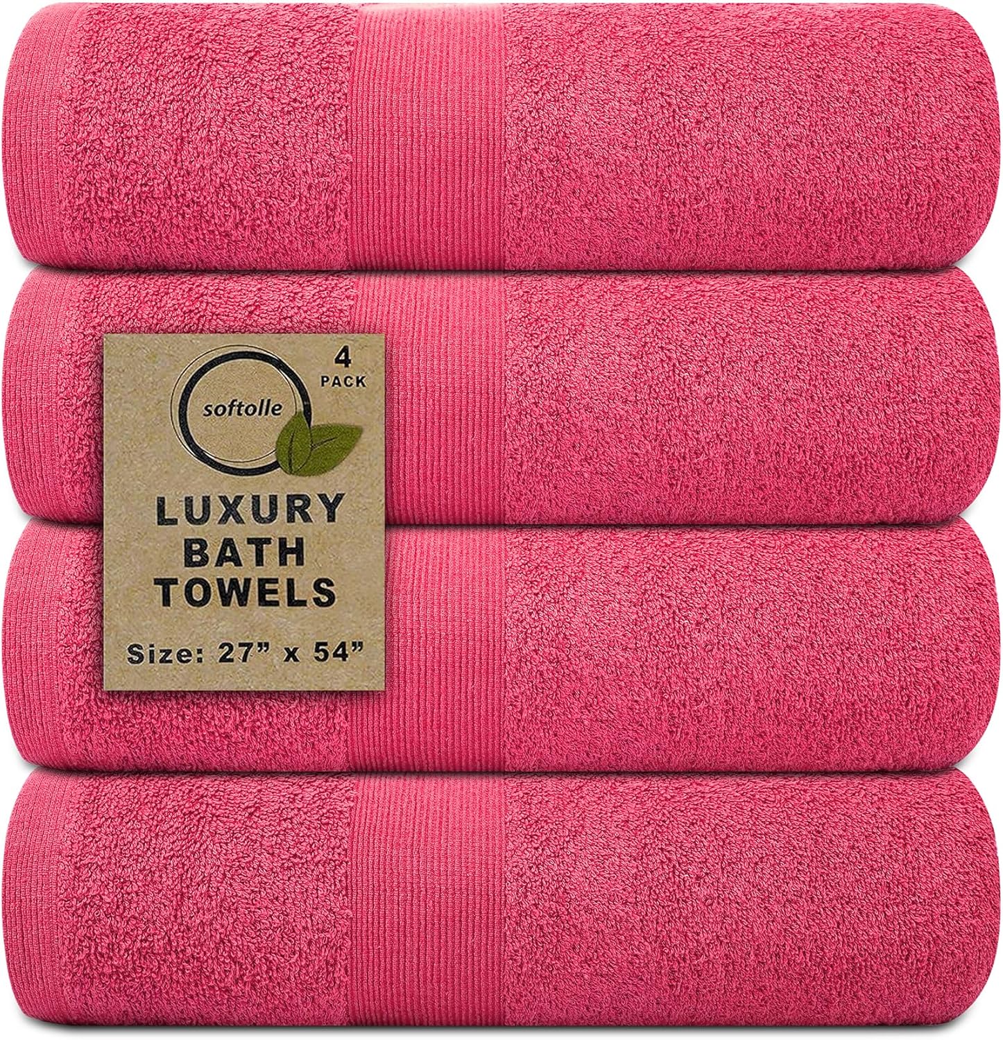 Softolle Luxury Bath Towels Set of 4 (27” x 54”) | Towels for Bathroom | Super Soft | Highly Absorbent Towels for Home, Spa, Gym (Raspberry)
