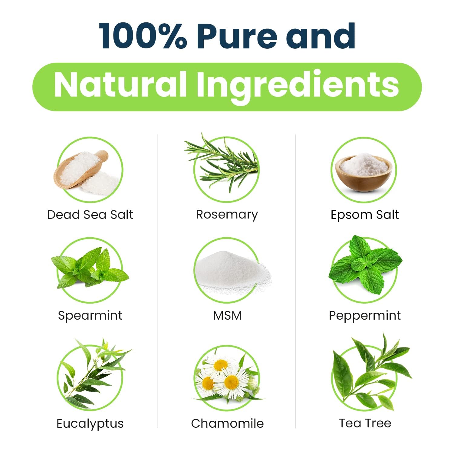 - 100% NATURAL TEA TREE FOOT SOAK FOR HEALTHY FEET: Using nothing but the finest natural and organic ingredients, this foot soak is rich in Epsom salts, Pure DeadSea salts, tea tree oil, eucalyptus, peppermint, cajuput, camphor, rosemary, lavender, and other essential oils. Their powerful combined action is the perfect way to fight away foot conditions, soften your calluses, moisturize your cracked heels and pamper your tired and sore feet whenever you feel like it!