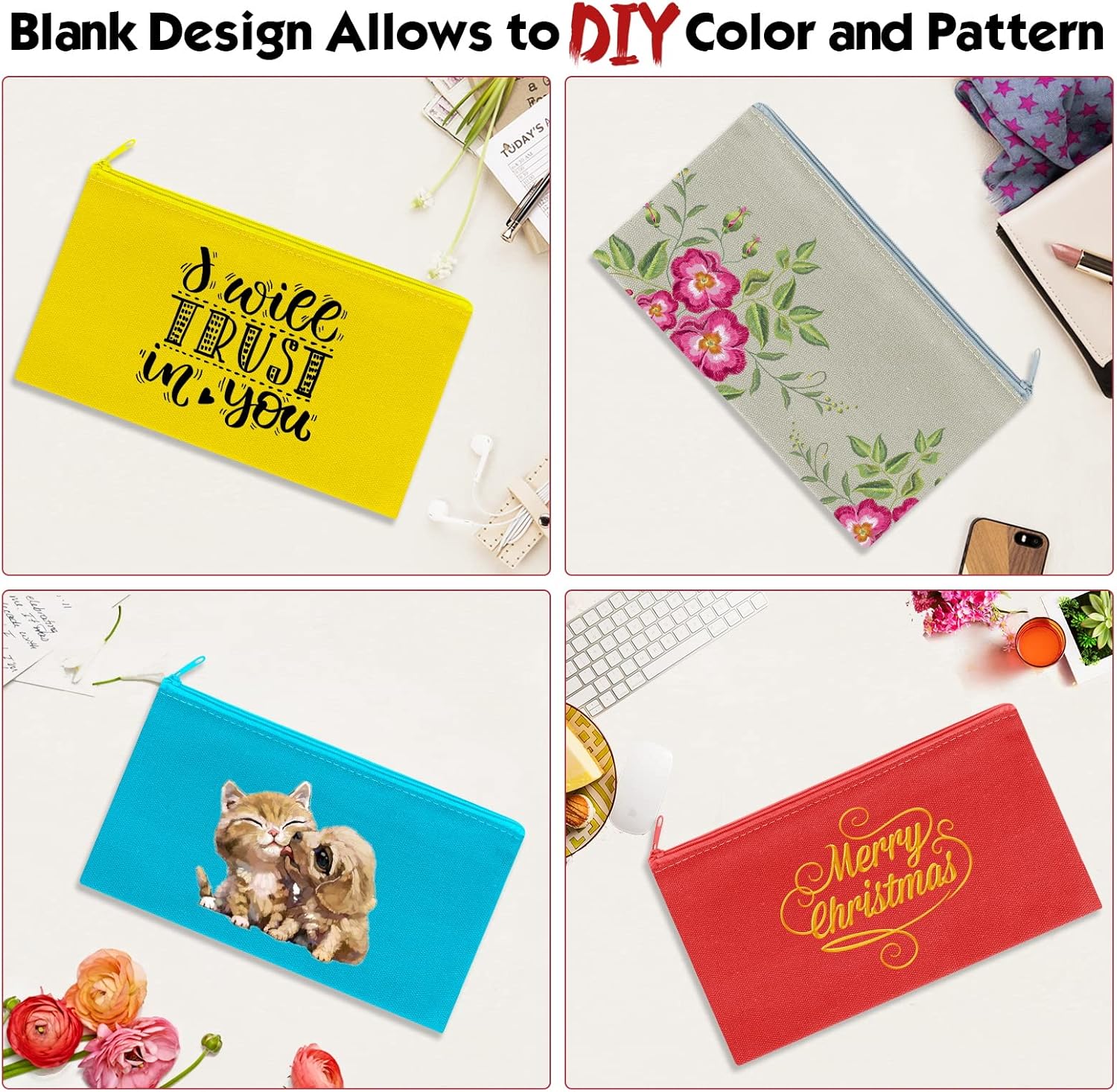 12 Pieces Cotton Canvas Makeup Bag, Multipurpose Cosmetic Bag with Zipper Travel Toiletry Pouch, Blank DIY Craft Bag (Multicolored A, L)