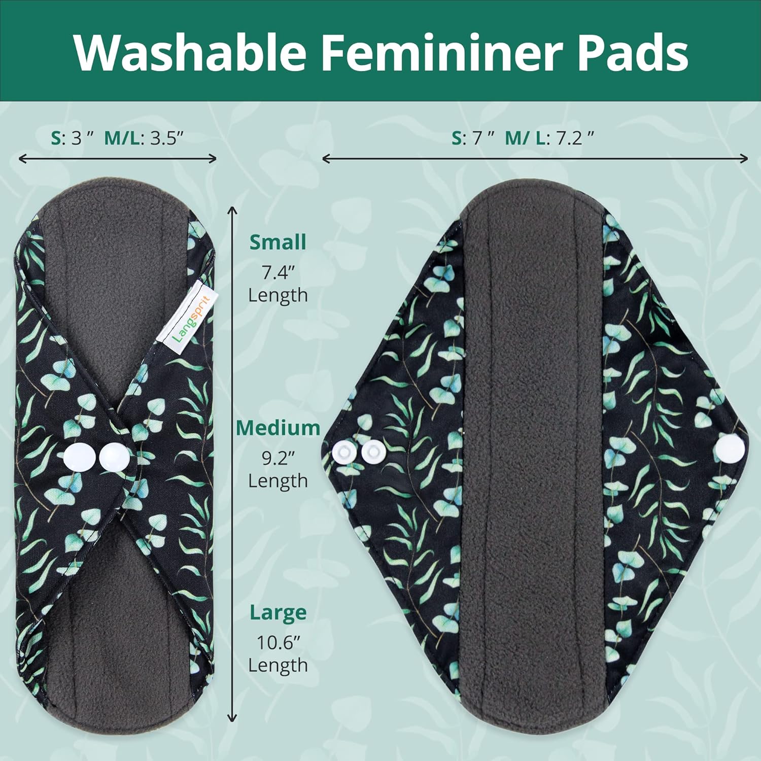 Langsprit Absorbent Reusable Menstrual Sanitary Pads/Washable Cloth Menstrual Period Pads,Reusable Panty Liners(Winter,L)