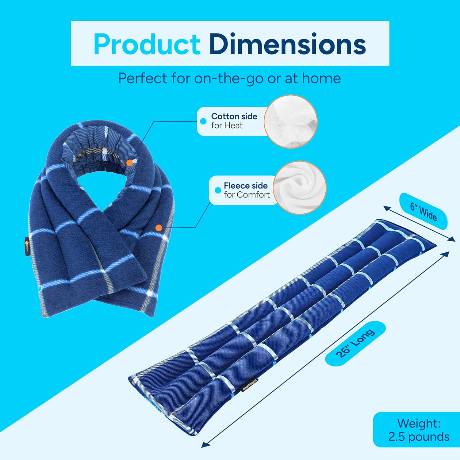 SunnyBay Microwave Heating Pad, Microwavable Heated Neck and Shoulder Wrap for Moist Hot Lightly Weighted with Moldable Flaxseed, Cotton and Fleece Surface, 26x6 Inches, Made in USA, Ocean Blue