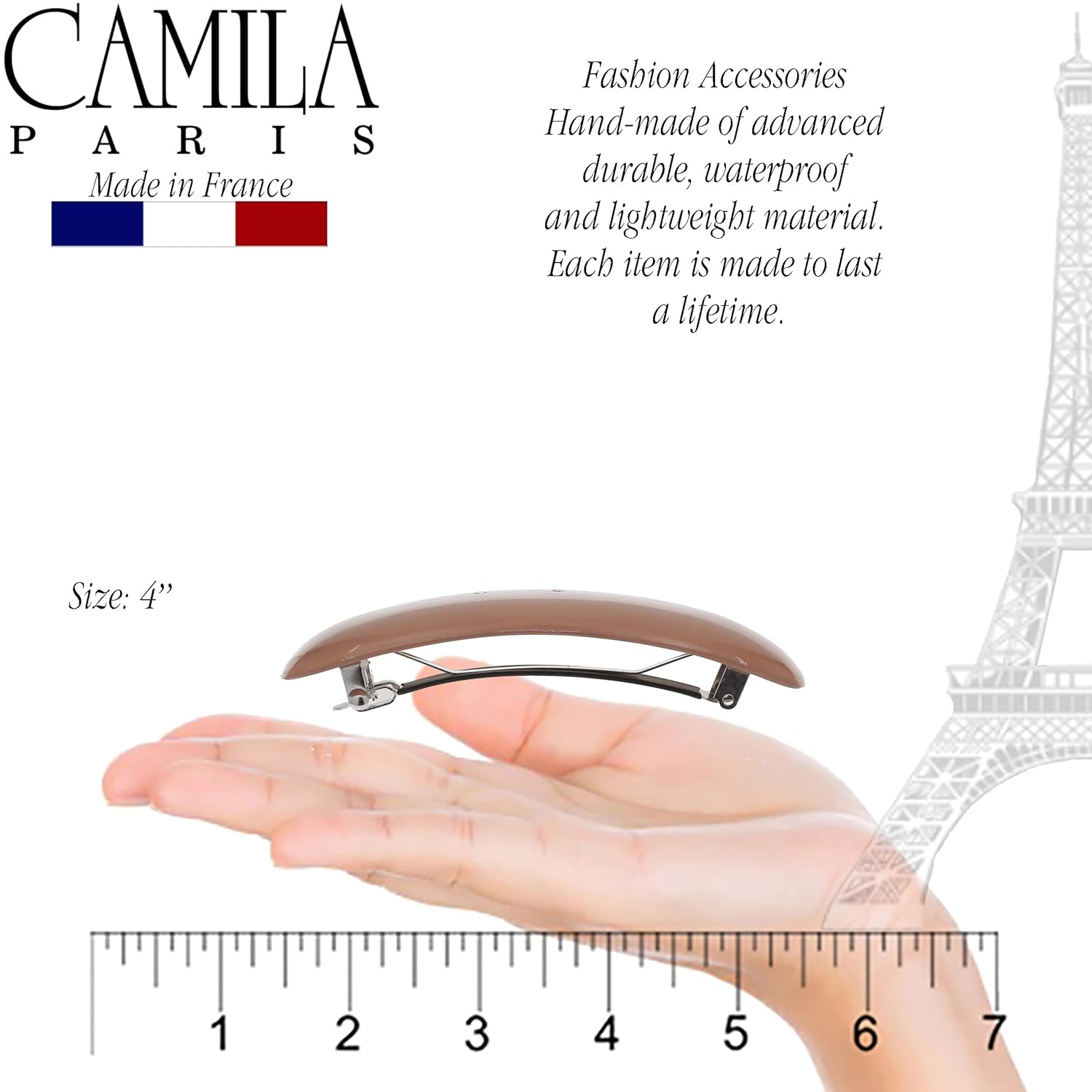 Camila Paris CP3440 French Hair Barrette Clip for Girls, Brown, Rubberized Automatic Clasp Strong Hold Grip Hair Clips for Women, No Slip and Durable Styling Girls Hair Accessories, Made in France