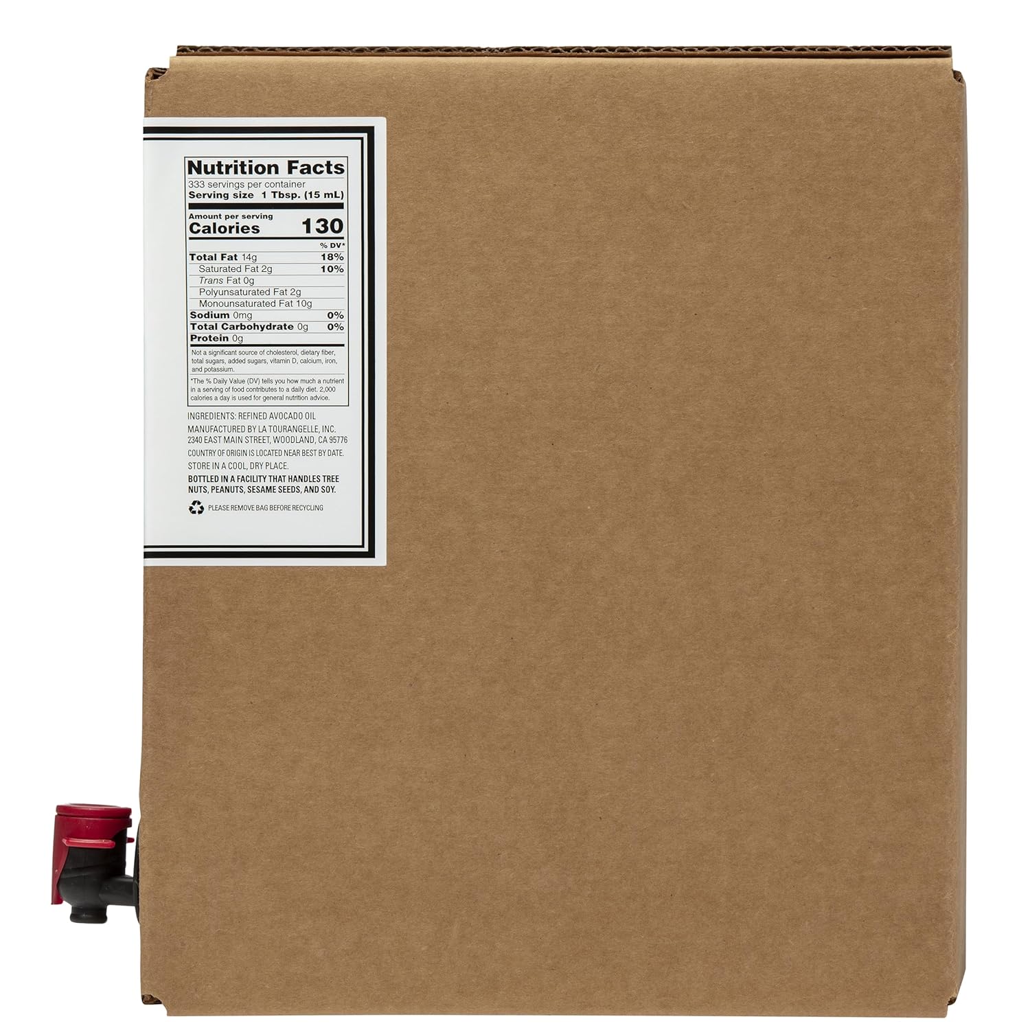 - CLIMATE-FRIENDLY 5L BOX: This 5 Liter Bag-in-Box is more environmentally friendly to ship, and is equivalent to 10 of our 16.9 Fl Oz (500 mL) tin cans. It comes with a spout for pouring oil directly onto your cooking surface, or for refilling reusable oil bottles.