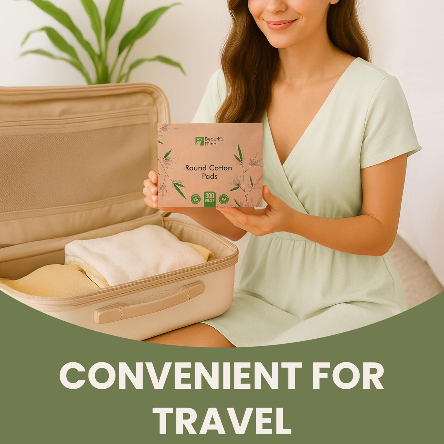 Cotton Round Pads for Face 300 Pack - 3 Layer Eye Makeup and Nail Polish Remover - Lint Free Cleansing Circle Pad for Facial Exfoliating, Toner - Travel Size Skin Care Rounds
