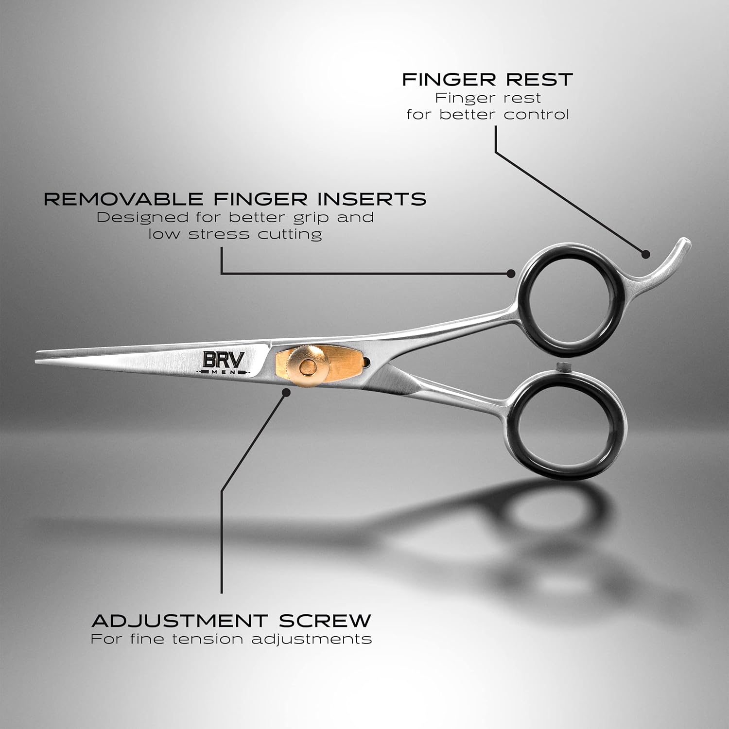 - QUALITY IN A MULTI-PURPOSE TOOL Grooming is a private pleasure best enjoyed with products you trust, and that represent the man you are. Our BRV MEN scissors are ergonomically designed to a professional standard, and are ideal for all the precision that trimming requires. From mustache to beard, and from sideburns and eyebrows you’ll need no other tool. Grooming Scissors For Men.