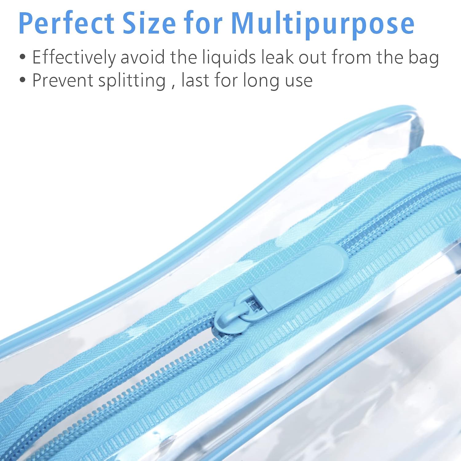 - See-though & Reinforced Seams: The TSA approved toiletry bag is made of 0.5mm thick transparent PVC, make you easier to spot your items, and ensure the security staffs check the items quickly; Reinforced seams prevent the bag splitting easily, to effectively reduce the liquids leak out from this bag (zipper is not waterproof)