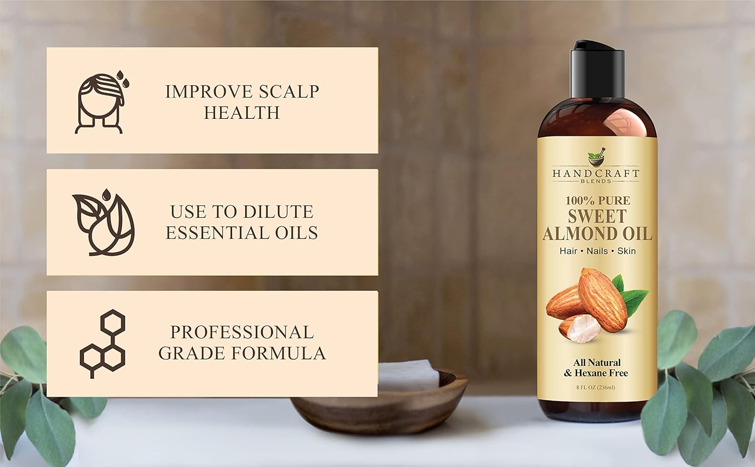 - 100% PURE & NATURAL SWEET ALMOND OIL is most used for aromatherapy, massage therapy and as a hair and skin moisturizer. Our almond oil is Fragrance Free, Hexane Free, Preservative Free, Chemical Free and 100% Vegan.