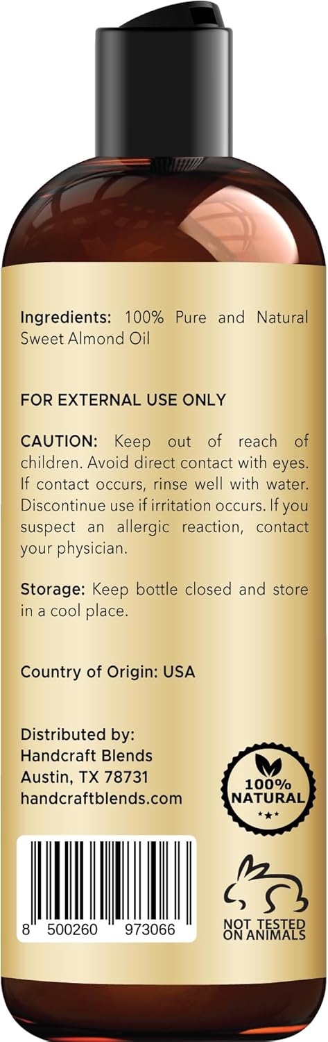 Handcraft Blends Sweet Almond Oil - 8 Fl Oz - 100% Pure and Natural - Premium Grade Carrier Oil for Skin and Hair - Hair and Body - Massage - Hexane-Free