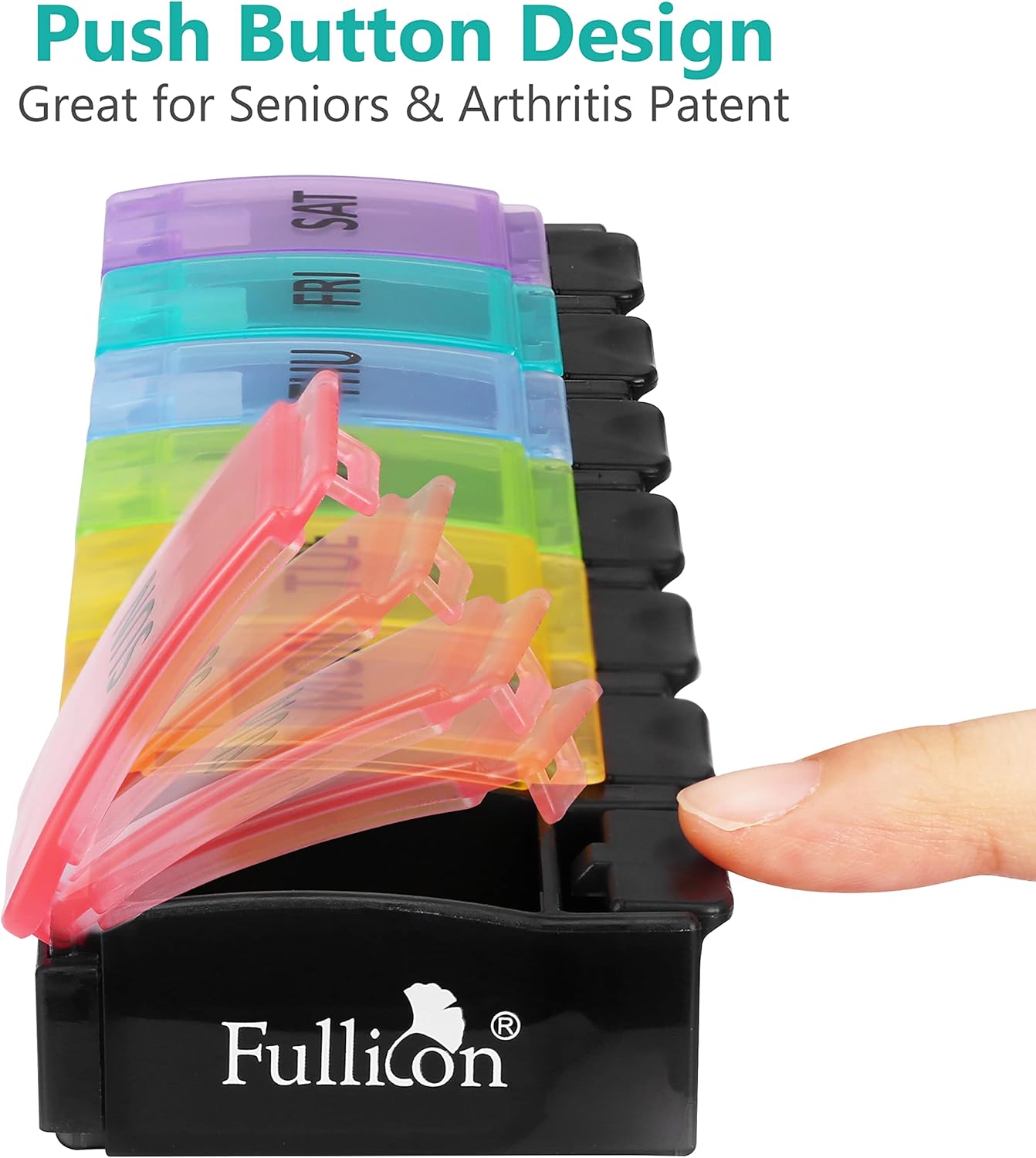 Fullicon Weekly Pill Box Organizer, 7 Day Tablet Boxes for Vitamins and Supplements, Easy to Open Large Medicine Box, Portable Medication Organizer for Travel