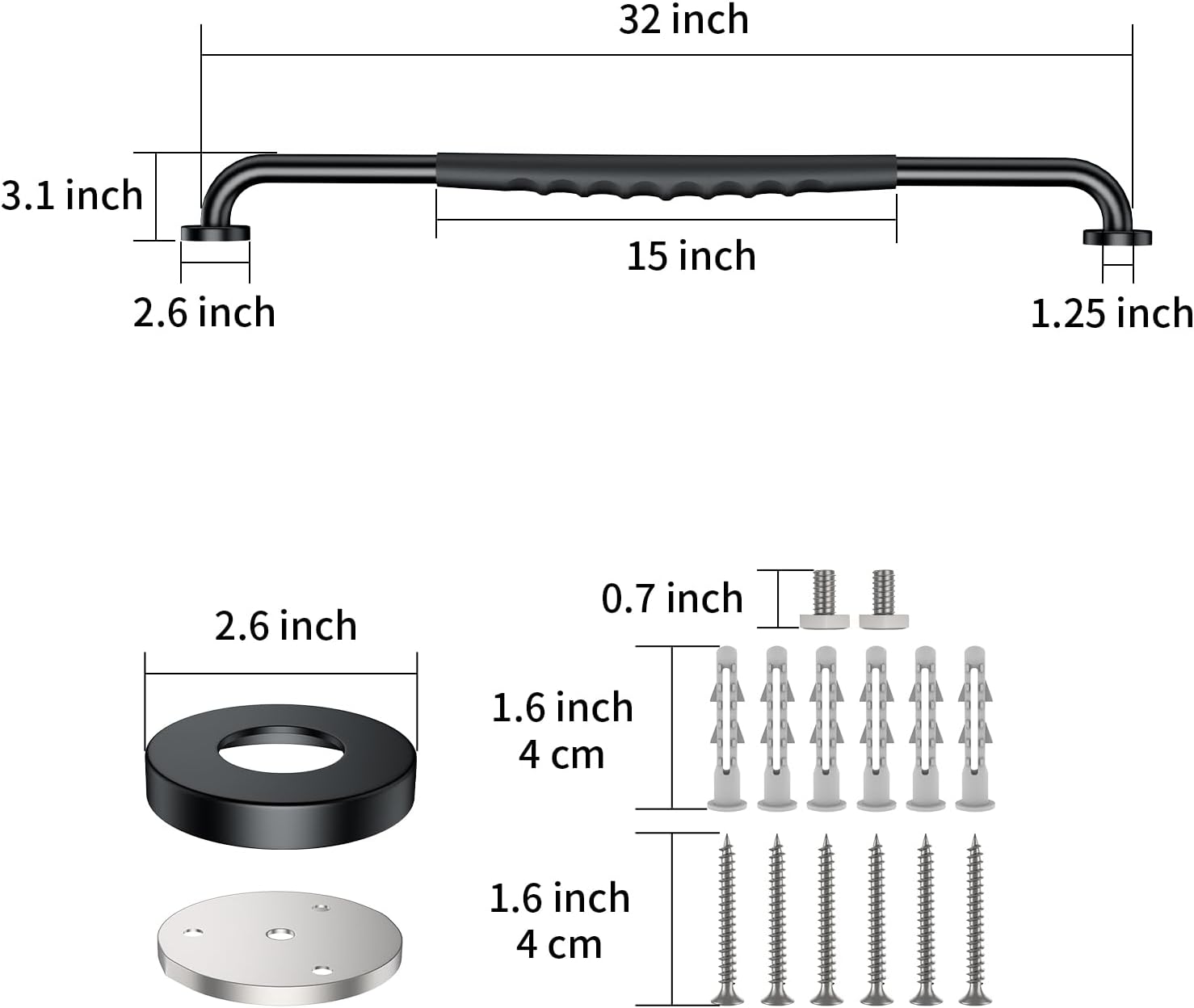 - Material : non slip 32 inch bathroom grab bars black