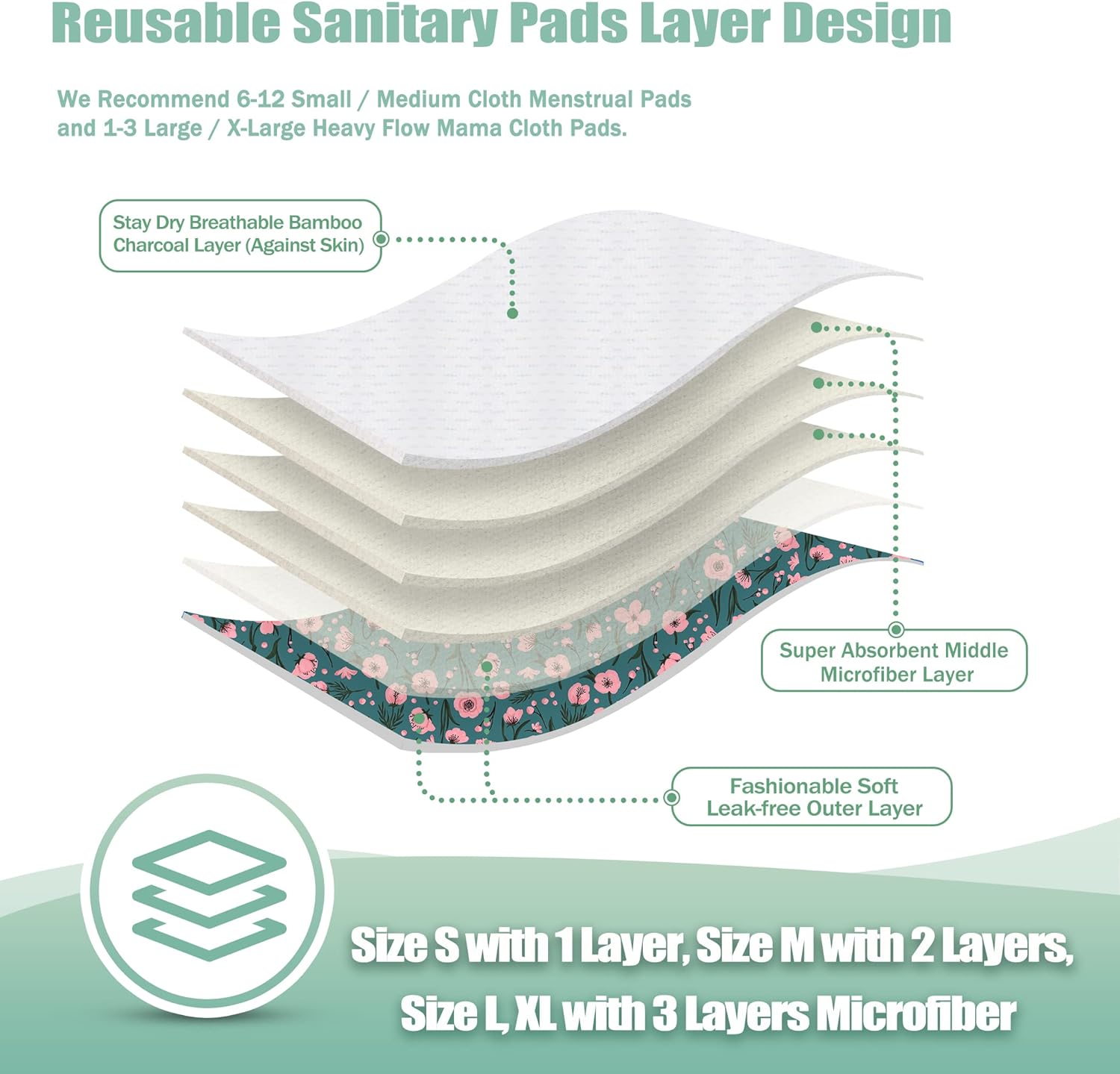 - Lovely Print Leak-free Outer of Cloth Sanitary Napkin and comfort of the softer, charcoa layer against your skin. Great as period panties too. Fold over and snap into place. Never feel embarrassing