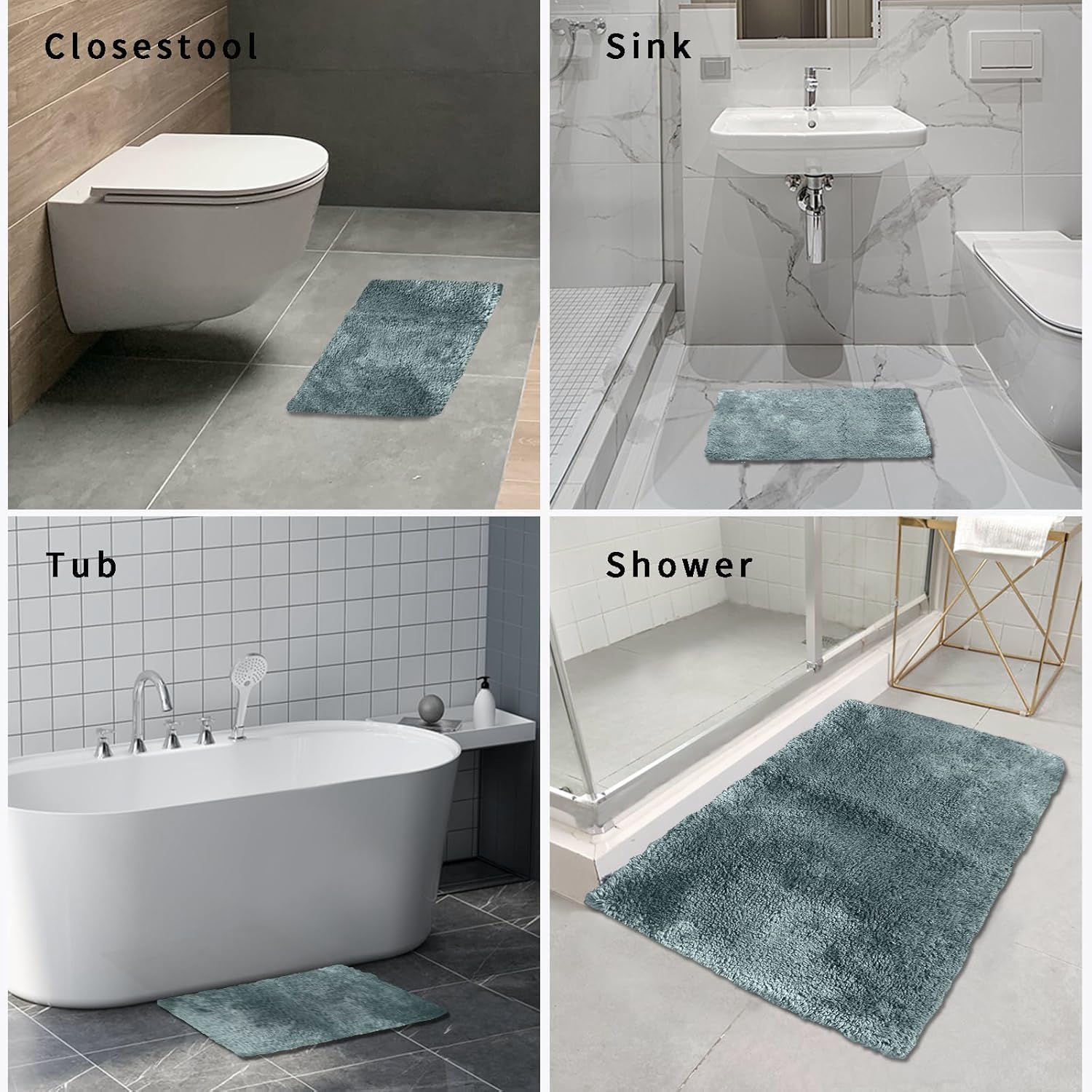 FIFU Bathroom Rugs 17" W x 24" L, Bath Mat for Bathroom, Bedroom, Laundry Room & Kitchen, Non-Slip Rubber Latex Backing, Extra Soft and Absorbent Polyester Carpet, Machine Washable Rug, Teal