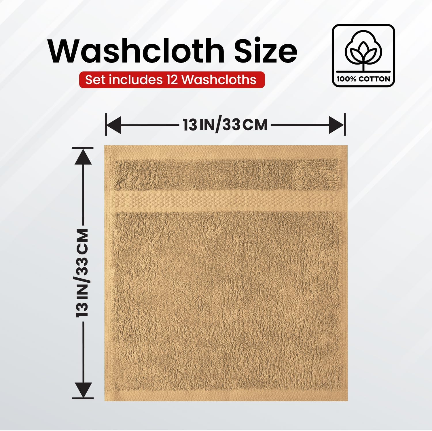 Infinitee Xclusives Luxury Wash Cloths for Showering [13x13] – 100% Cotton Washcloths [Pack of 12], Soft and Absorbent Face Towels for Bathroom Wash Clothes, Gym, and Spa (Cosmic Sand)