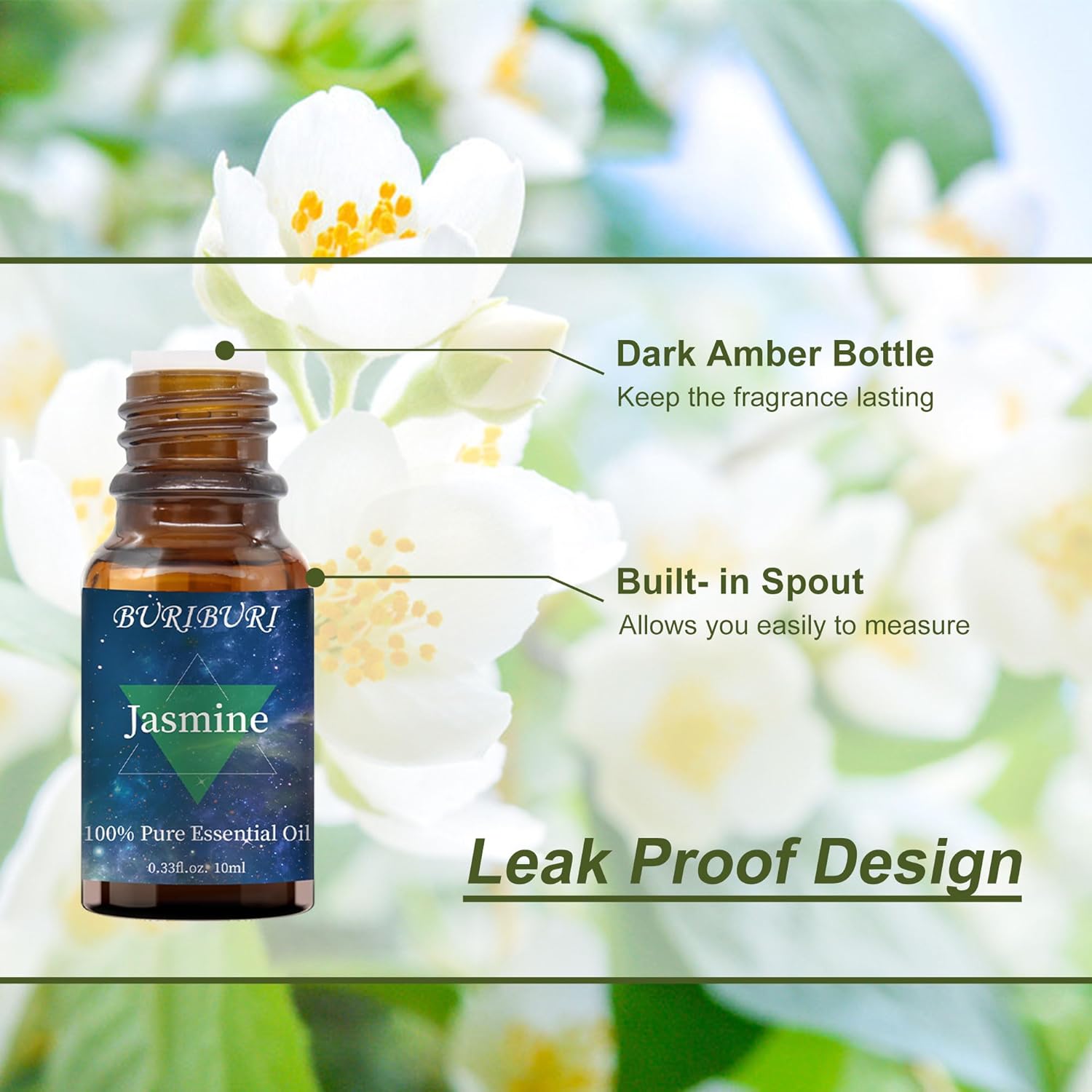 - Packing Includes: 10ml Honeysuckle Essential Oil x1, 10ml Jasmine Essential Oil x1. With no adulterants or dilution, 100% pure quality. BURIBURI scented oil is bottled in a durable amber glass bottle.