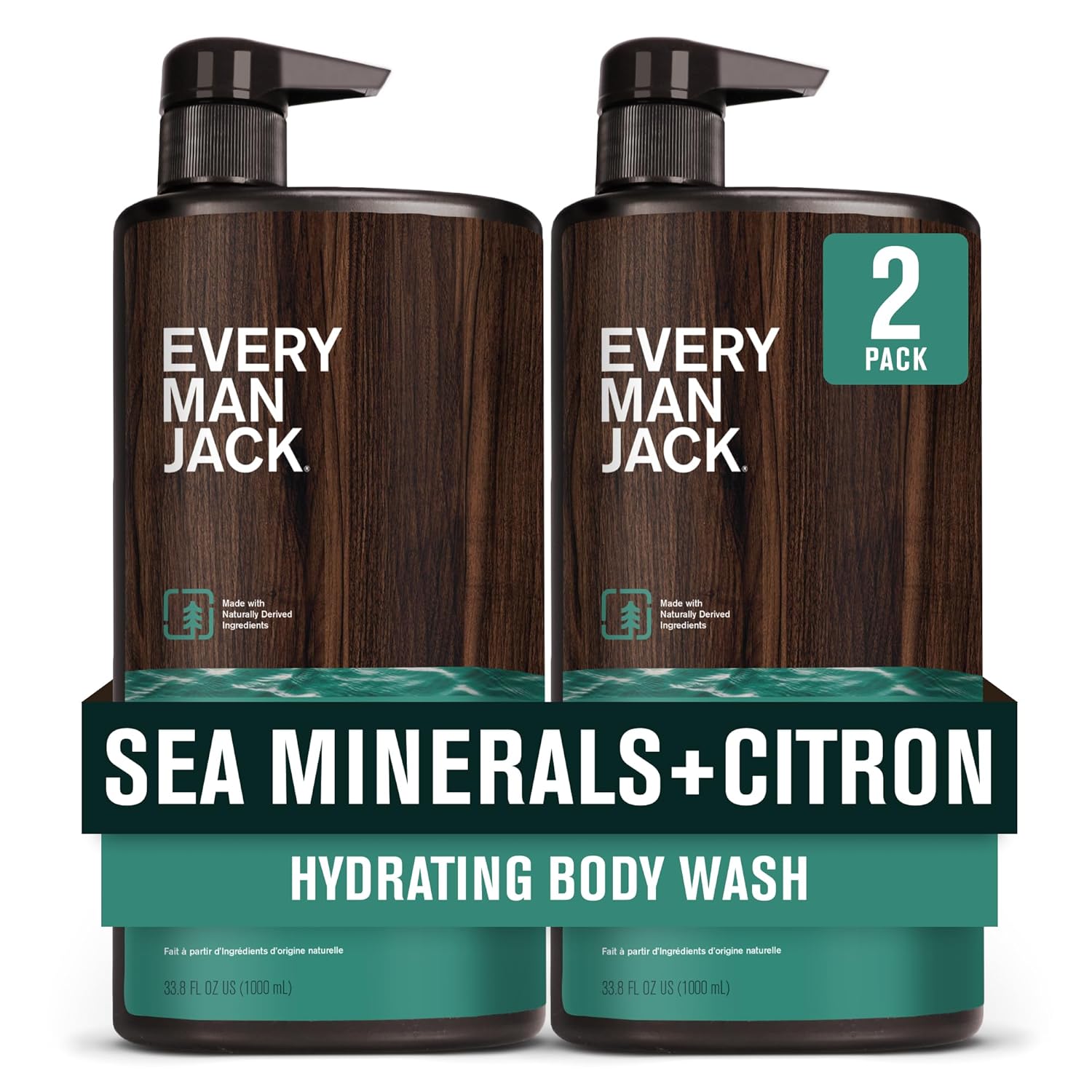 Every Man Jack Men’s Hydrating Body Wash for All Skin Types - Cleanse and Hydrate Skin with Naturally Derived Marine Extracts, Coconut Oil, and a Sea Minerals + Citron Scent - 33.8 fl. oz. - 2 Bottle