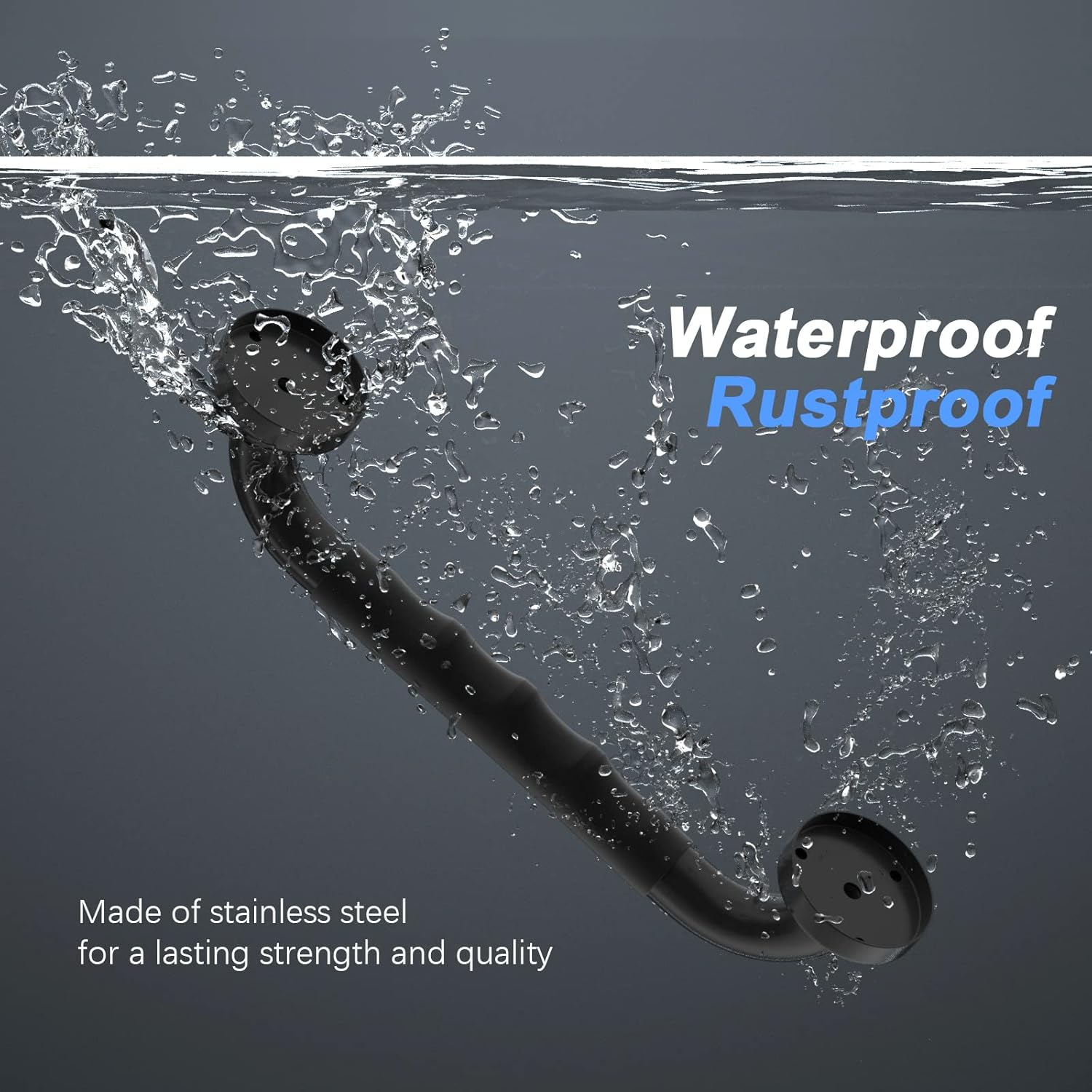 - Made of stainless steel matte black finished with black rubber anti-slip grip for a lasting strength and quality. Able to support up to 500 lbs of pull force to provide a stable, reliable handhold; Total length is 12 inch (300 mm); 2.4 inch (60 mm) flange; 1 inch (25 mm) outer diameter; 25 gauge (25 mm) stainless steel tube; 6 rust-proof screws included(for each bar); 3-hole flange design used for stud mounting.