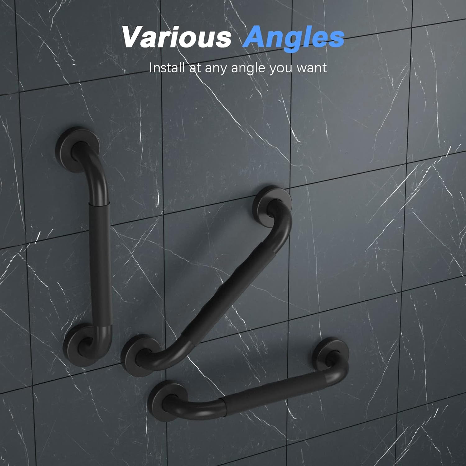 - Use iMomwee black grab bars with anti-slip grip 12 inch in commercial and residential places as in the bathroom, kitchen, along stairways, swimming pool, laundry room, toilet, bathtub and shower safety grab handrails for additional fall prevention, especially for the handicap, elderly, pregnant women and children. Not only apply to use as bath shower grab bar, but also can hold clothing, towel, etc.