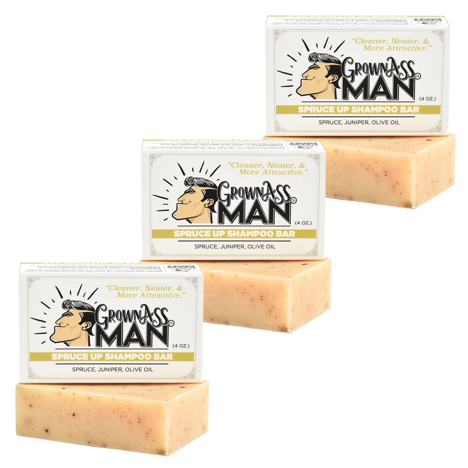 Grown Ass Man Co. - Solid Shampoo Bar Rich Lather 3 in 1: Hair, Beard & Body Wash - Plastic Free & Eco-Friendly, Natural & Organic for All Hair Types, 4oz Bar (Spruce Up, 3-Pack)