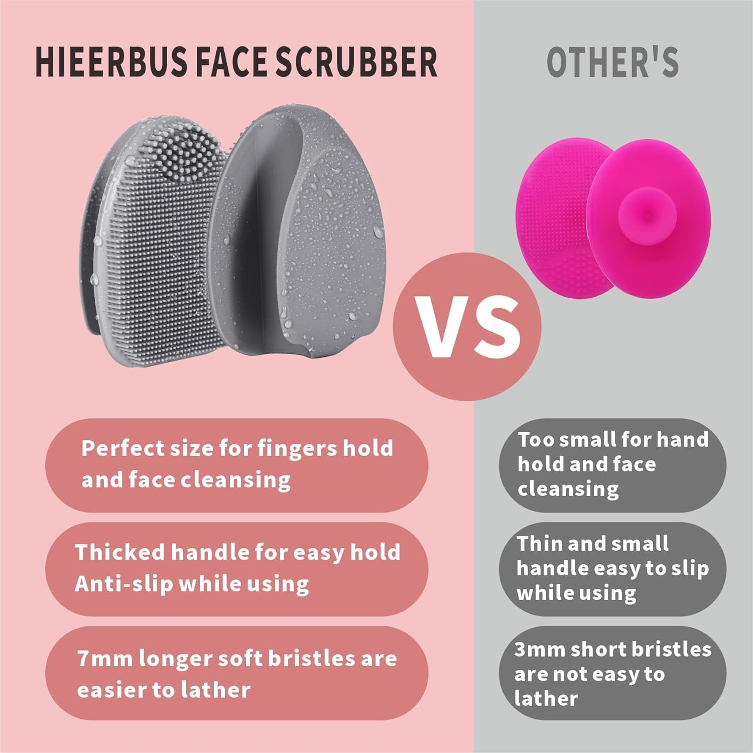 - 【More Hygienic Face Scrubber】HieerBus face scrubber made of food grade silicone material, that is easy to clean, quick-drying,Make it more hygienic than the brushes/sponges of other materials. More healthy, durable, and longer service life.