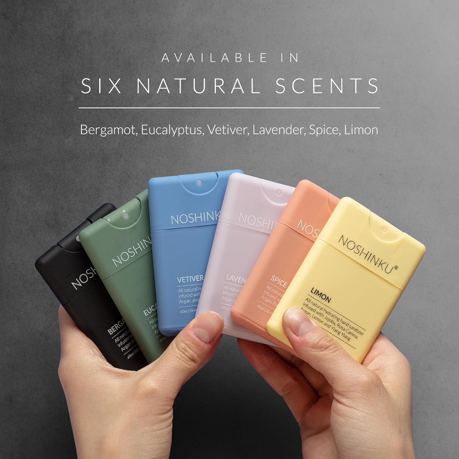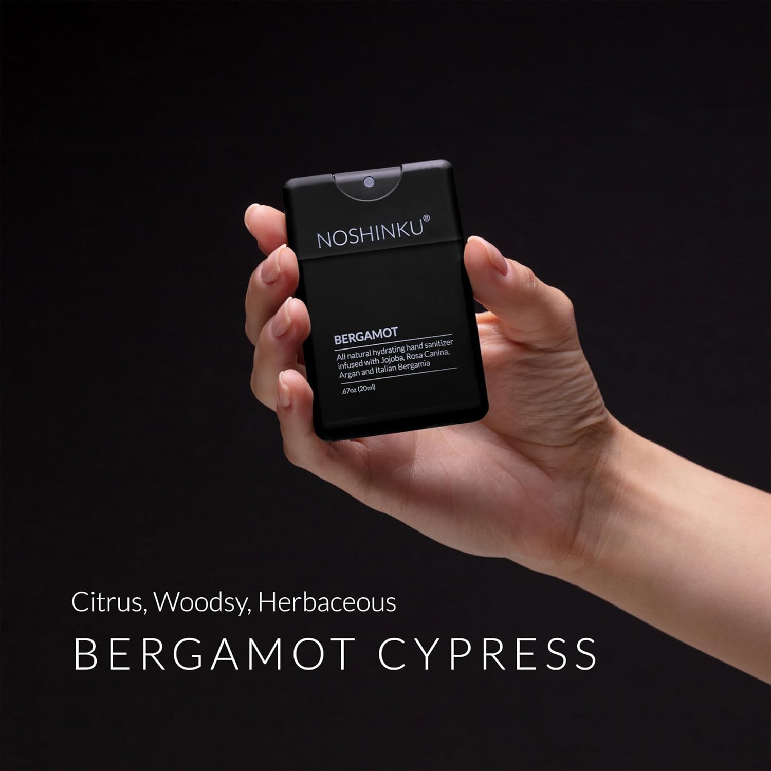 Noshinku Bergamot Pocket Hand Sanitizer Refill Kit: Refill Pouch + Sprayer Bundle | Organic Antibacterial Sanitizing Mist with Moisturizing Oils | FDA Registered | 70% Sugarcane Derived Alcohol