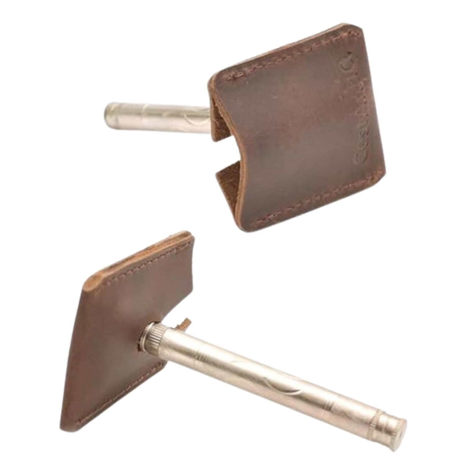 Leather Safety Razor Cover – Double Edge Protector, Travel Shaving Pouch, Snap-On Head Guard, Durable Leather Case for DE Blades, Compact Shaving Accessory Pouch