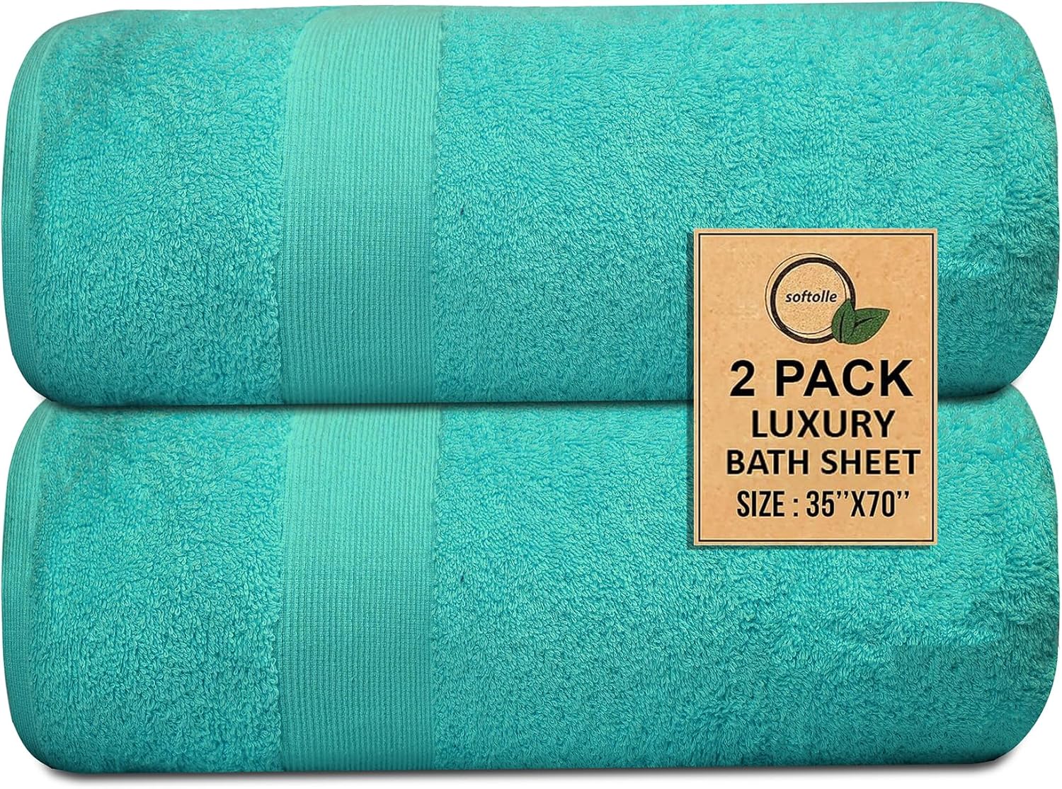 100% Cotton Luxury Bath Sheets - Pack of 2 (35" x 70") | Super Soft, Quick-Dry & Highly Absorbent Towels for Bathroom, Home, Spa & Gym (Turquoise)