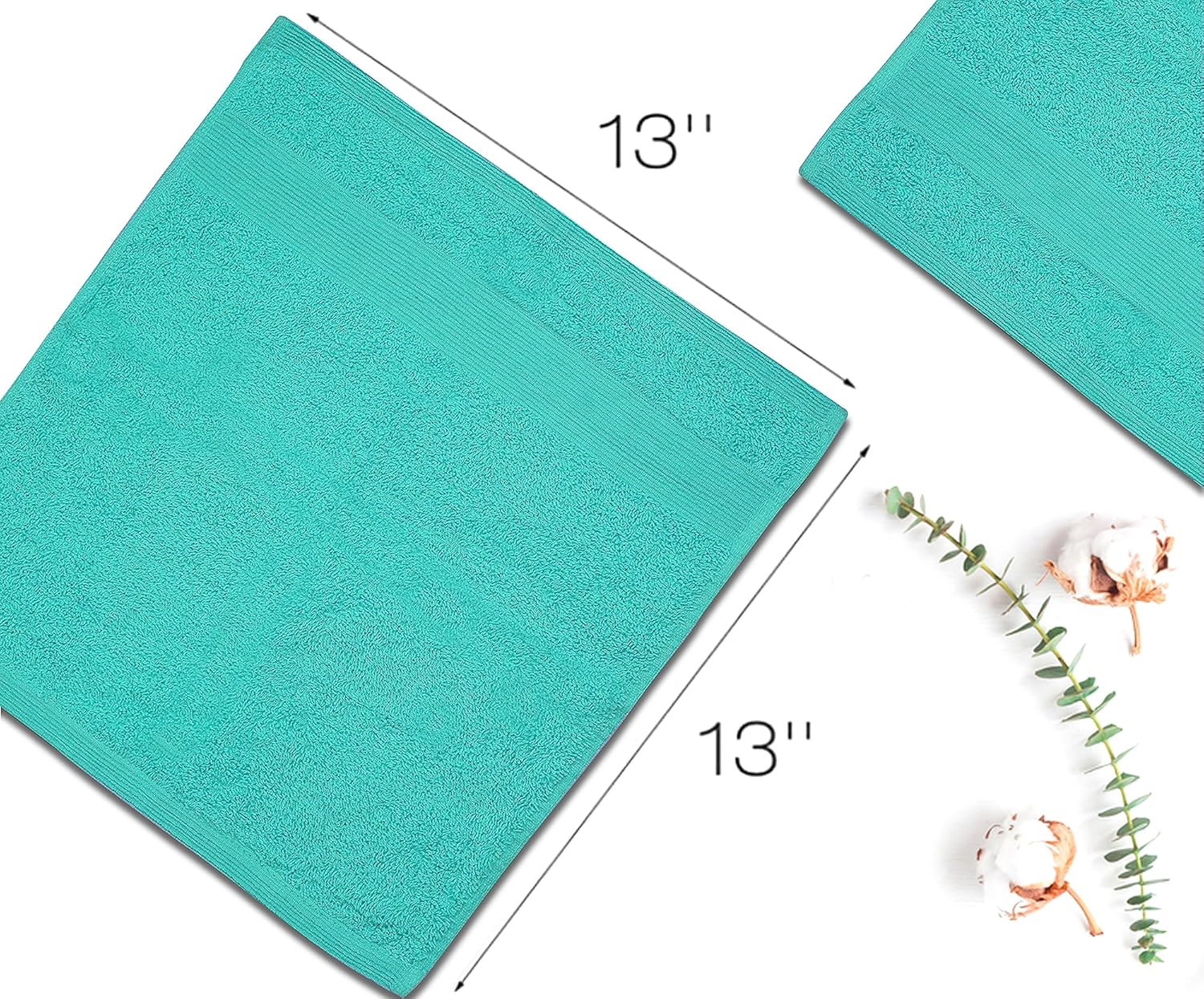 Premium Wash Cloths Pack of 12 (13" x 13") 100% Ring Spun Cotton | Luxury Washcloths | Ultra Soft Face Towels | Highly Absorbent Wash Cloths for face (Turquoise)