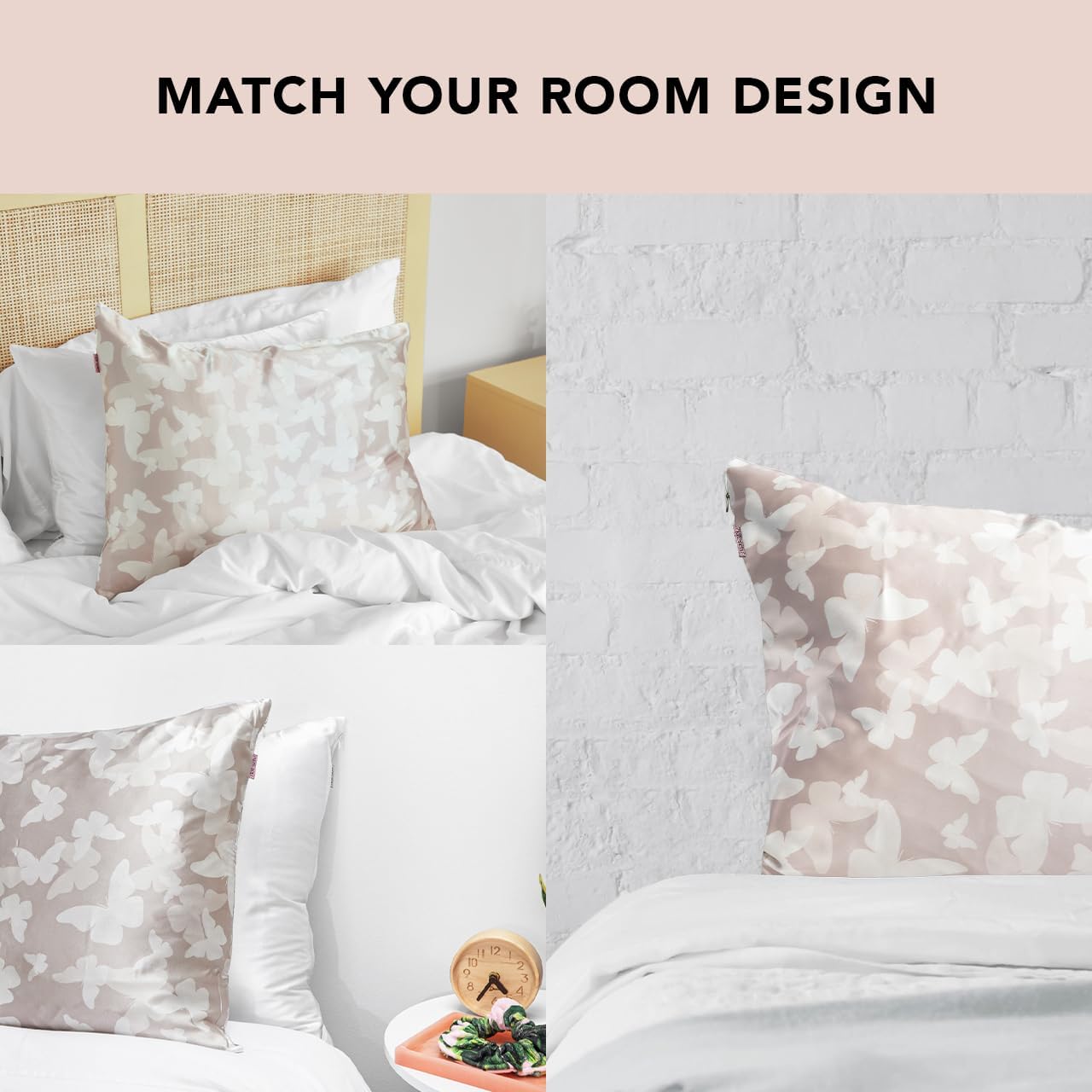 Kitsch Satin Pillowcase with Zipper for Hair & Skin, Softer Than Silk Pillow Cases Queen, Wrinkle-Free, Smooth and Cooling Satin Pillow Covers, Standard Size 19"x26", Champagne Butterfly