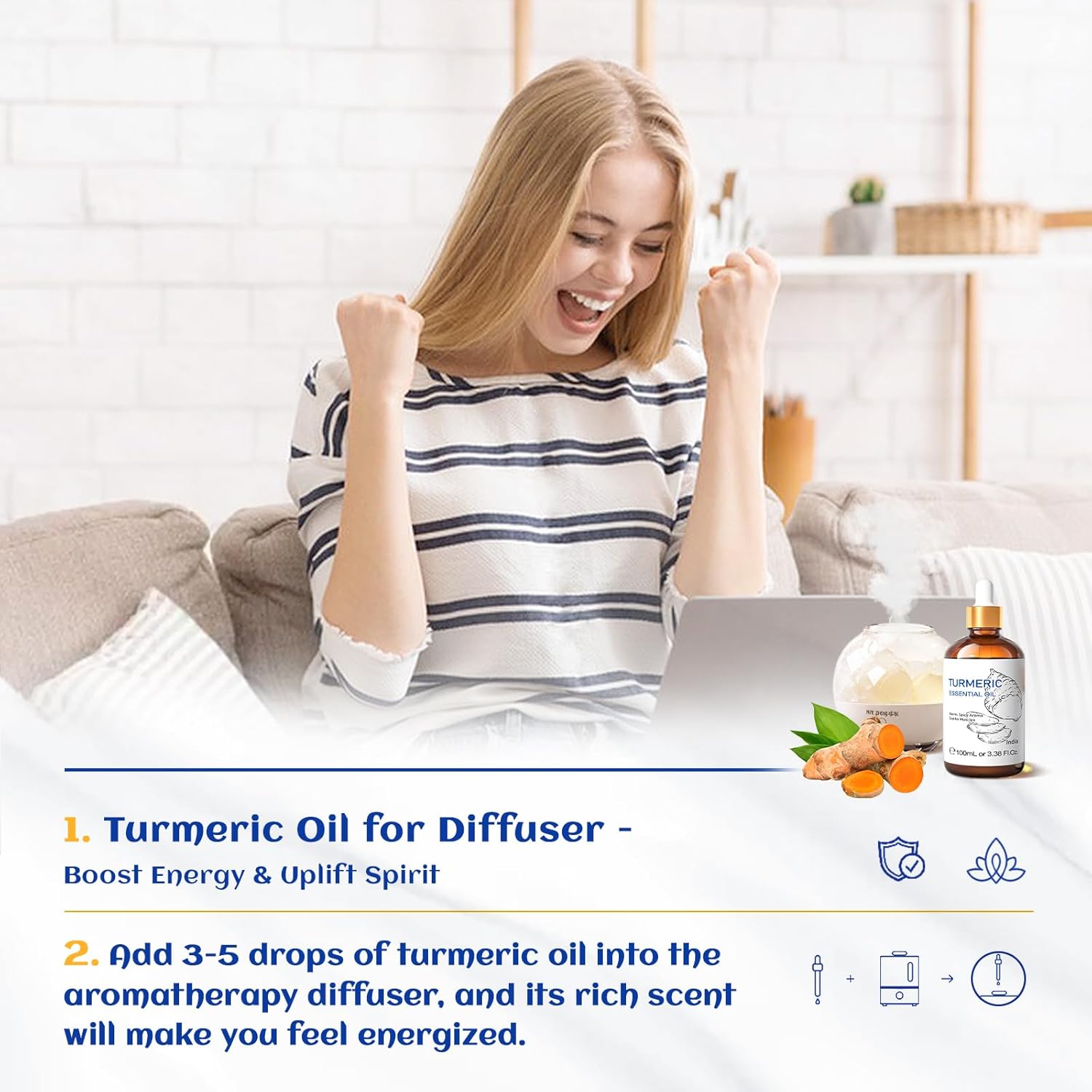 HIQILI 100ML Turmeric Oil for Face Skin Care, Aromatherapy,100% Pure, Use After Dilution- 3.38 Fl Oz