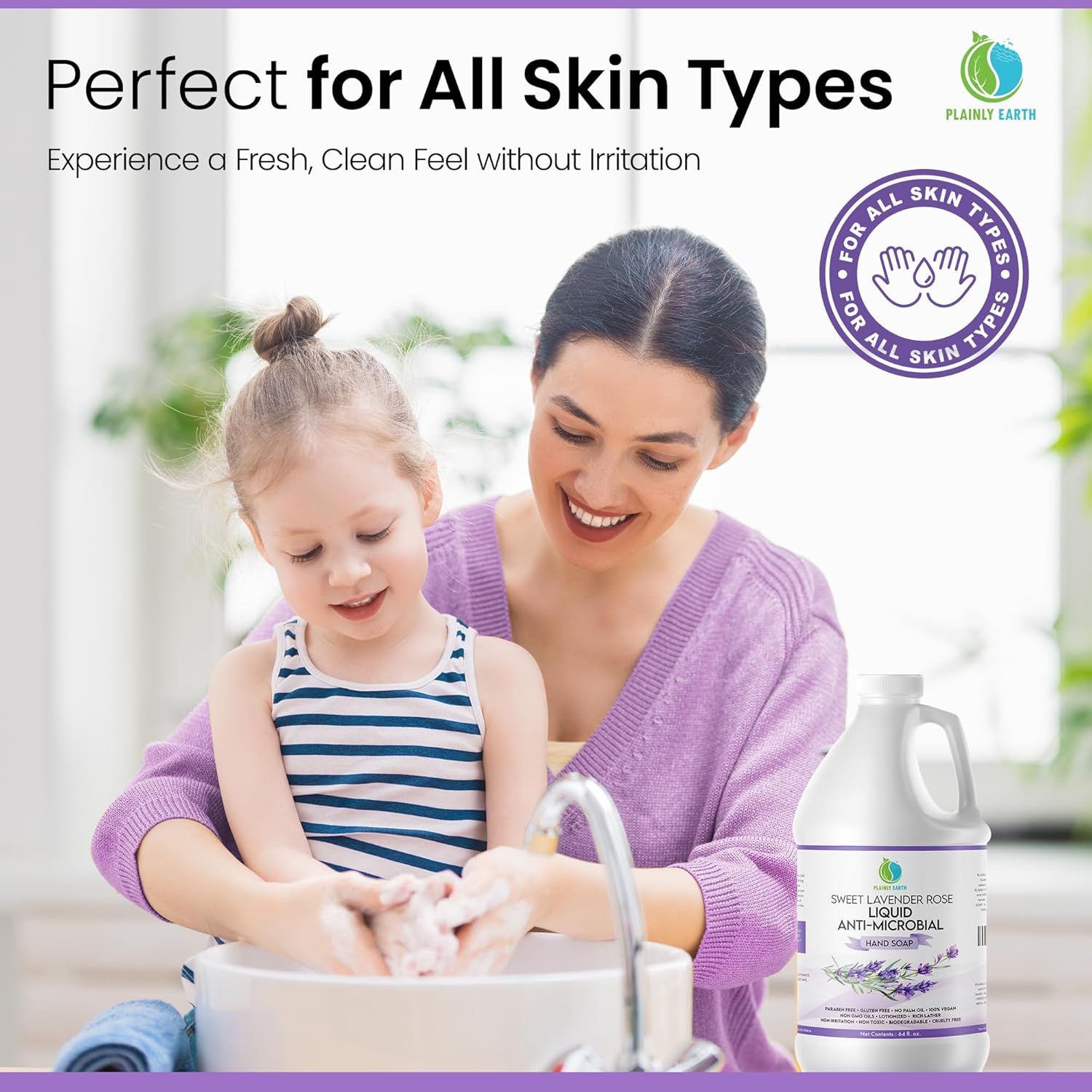 AntiMicrobial Hand Soap 64 oz - Soft and Gentle Sweet Lavender Rose Antibacterial Hand Wash Soap, Long Lasting Freshness & Safe for Skin - Eco Friendly Bulk Refill Packaging