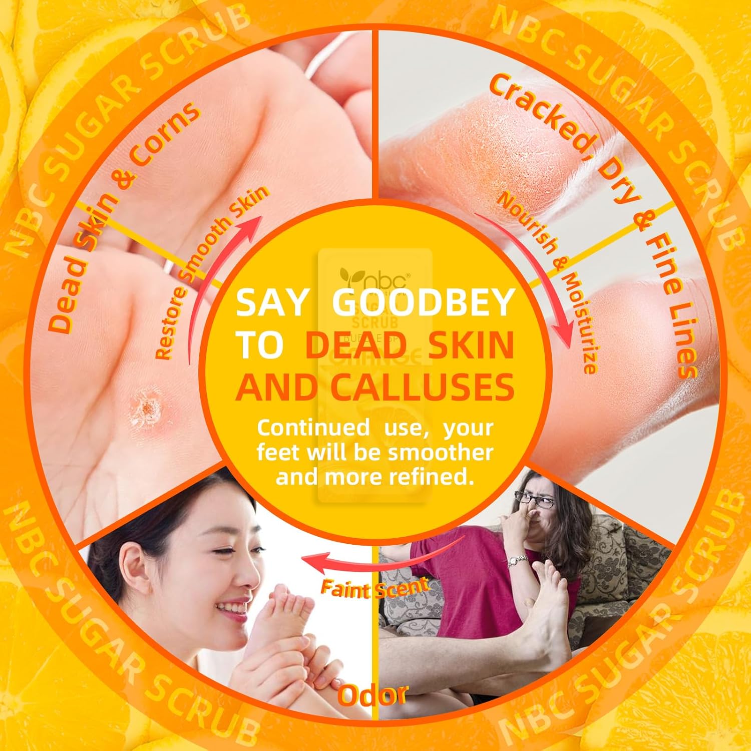 - ✅【Dead Skin Remover for Feet】 Our foot Sugar Scrub is moisturizing and rich in antioxidants to soften and nourish dry skin. It can slow down skin aging while removing unwanted toxins and dead skin cells. Wave goodbye to dry, cracked feet after just one use.