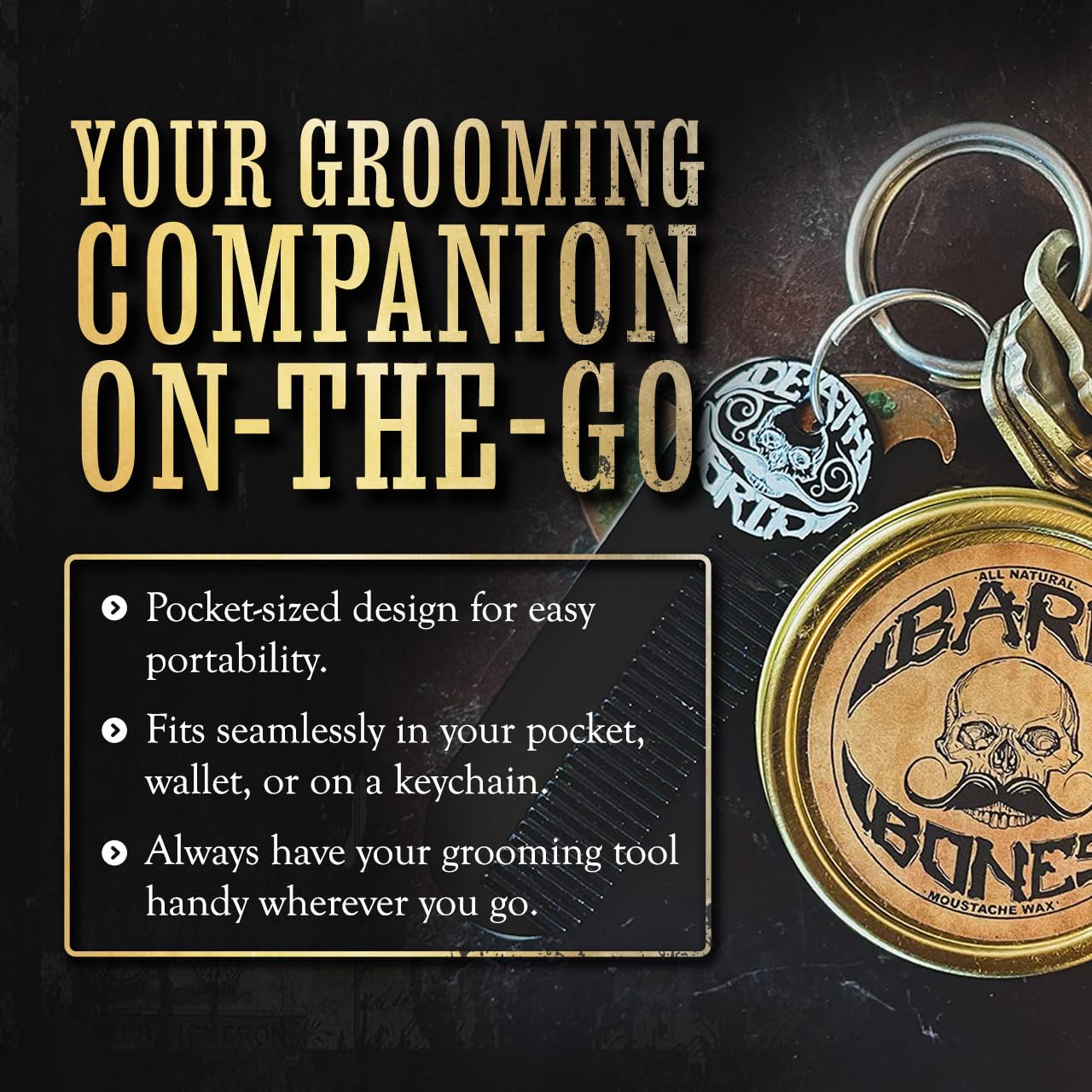 - Mens Keychain Pocket Comb - Easily Accessible To Fix Up & Groom Your Mustache, Beard, Goatee, Handlebar Moustache Or Sideburns