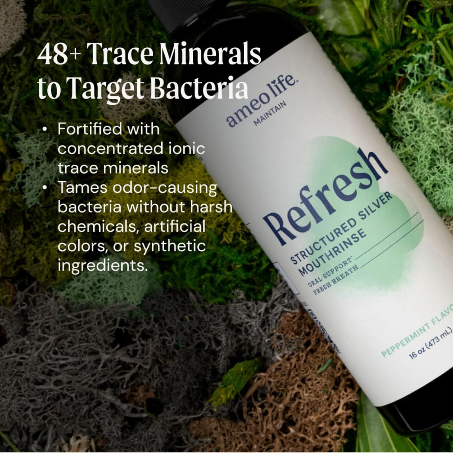 Ameo Life Structured Silver Mouthwash 10ppm Mint Flavor - Natural Colloidal Mouthwash for Fresh Breath & Oral Health, Alcohol-Free Oral Rinse with Silver Nanoparticles, 16 oz